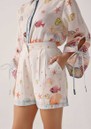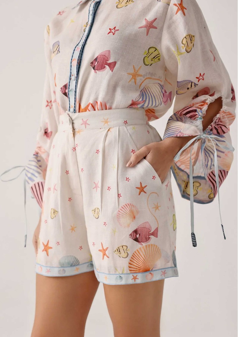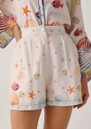 The Noib Mia shorts in Seaborn feature a relaxed silhouette with an easy drape, crafted from a breathable linen-lyocell blend and finished with distinctive placement print detailing for a considered, modern feel. Designed with an elasticated back waist for comfort and side pockets for everyday practicality, they offer an effortless warm-weather essential.