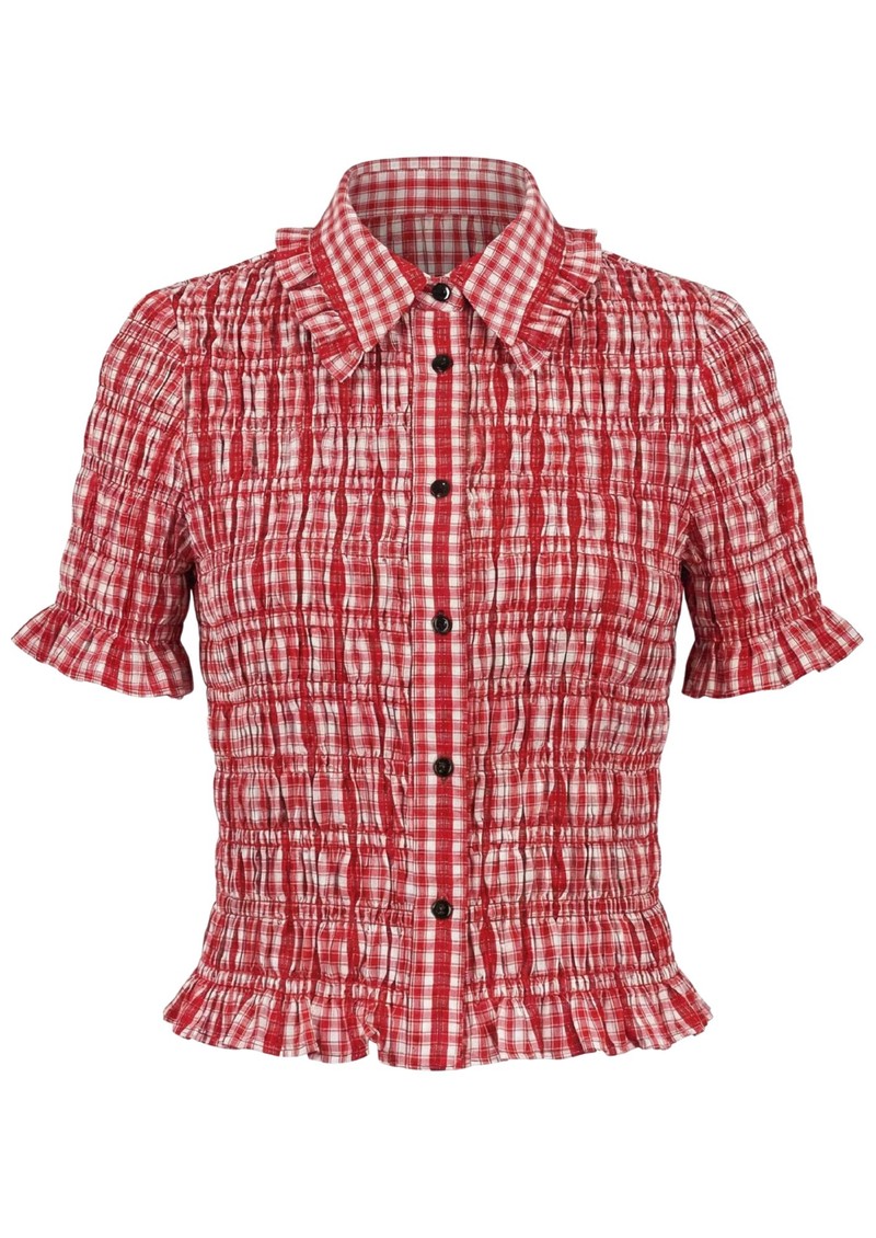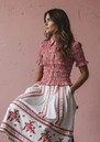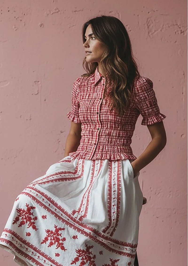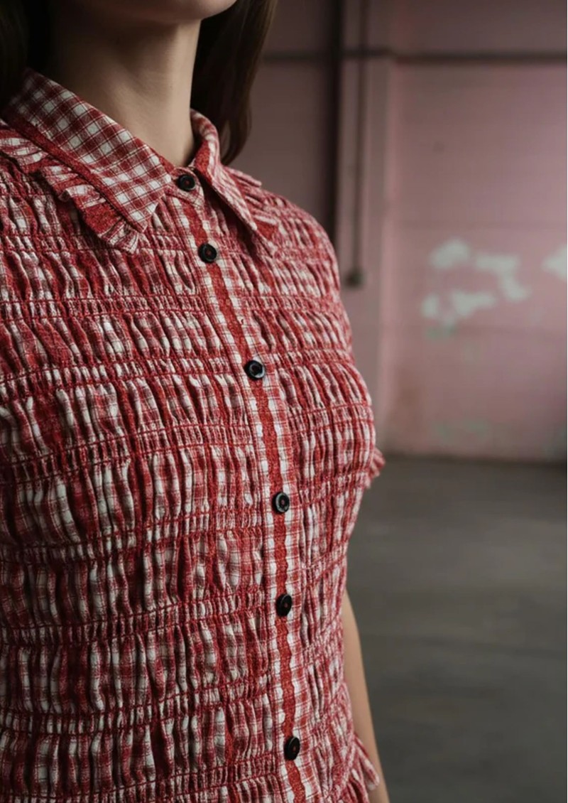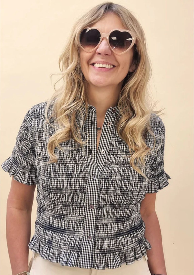 Say hello to the Nooki Astrid Blouse. We are loving this shirred shirt, it's perfect for easy yet elevated styling, and looks great underneath a jumper with the collar poking out. This fitted piece has a cropped length and frill sleeves for a feminine touch. Key features of this Nooki top are: