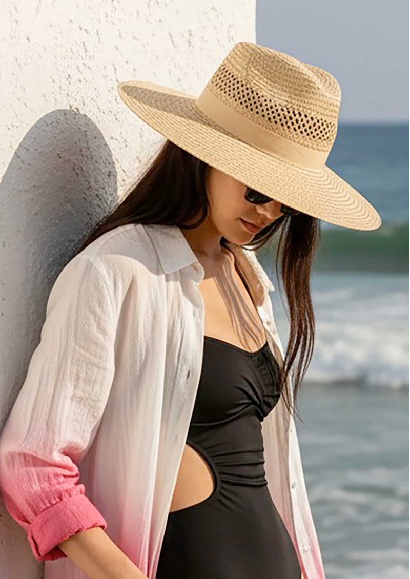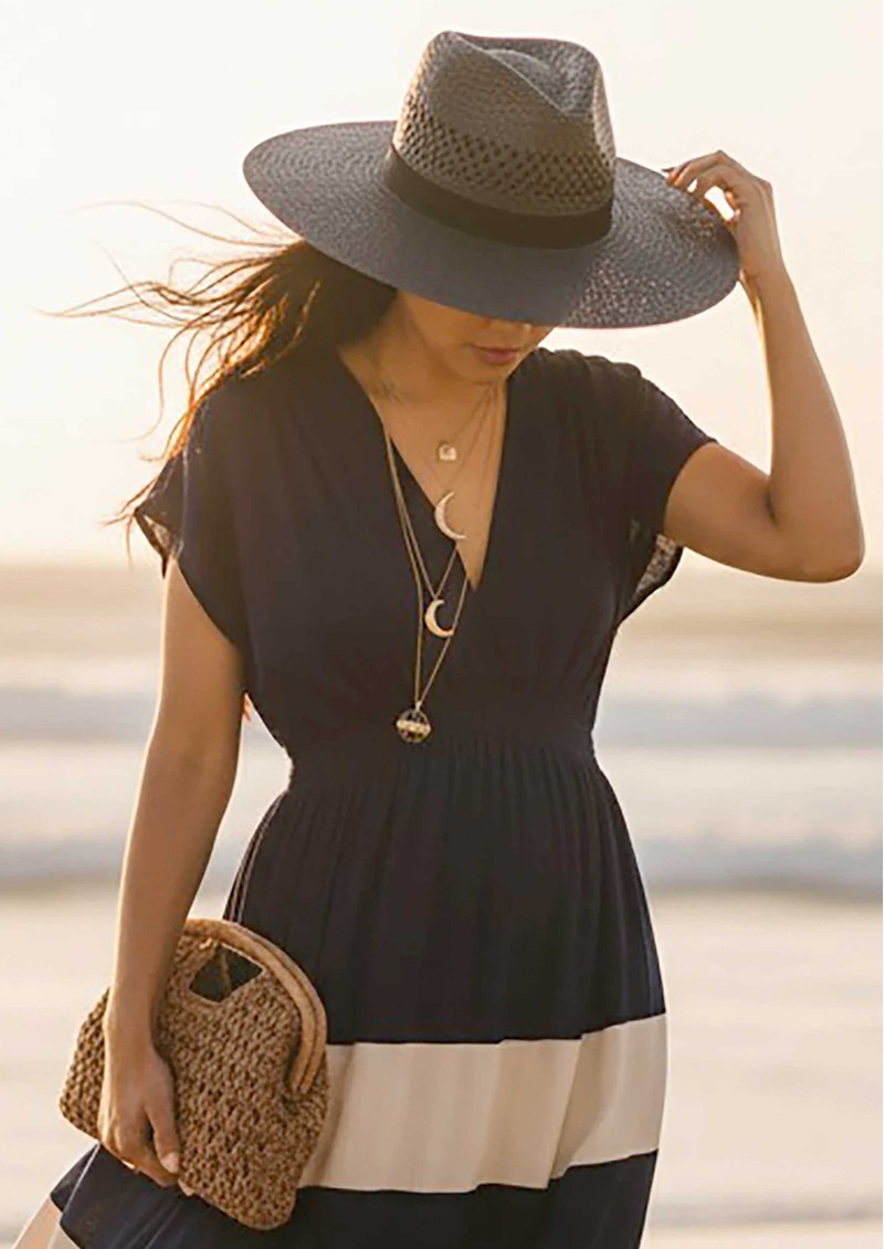 The Nooki Beth hat in Black is an oversized fedora-inspired style that blends classic structure with a bold, statement-making brim. Crafted from hand-woven paper with subtle cutwork detailing, it brings a relaxed, summer-ready feel while maintaining a standout silhouette.