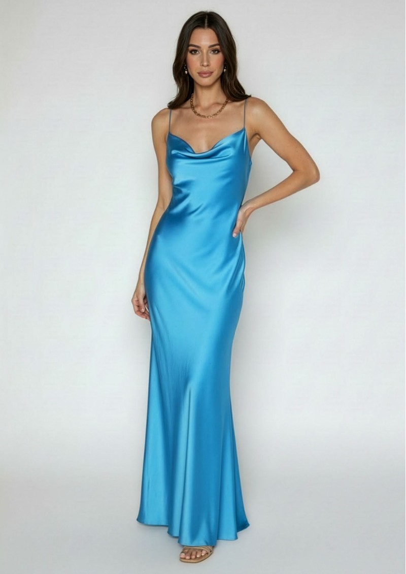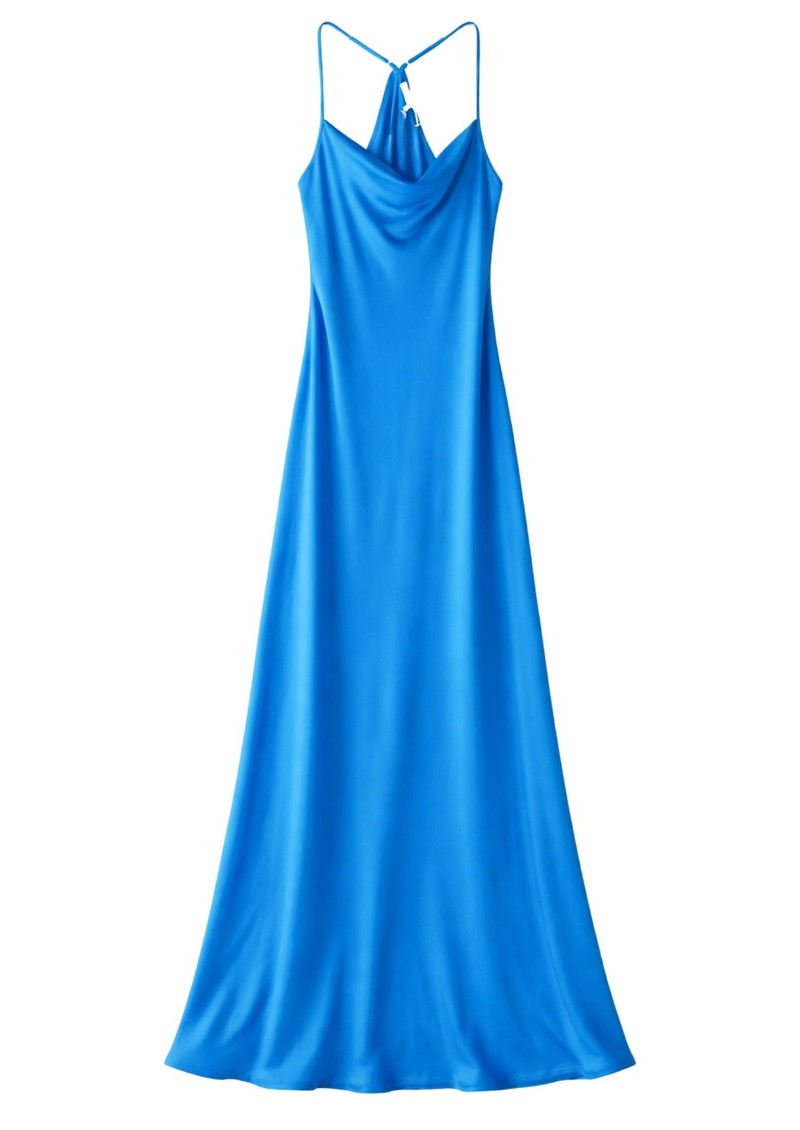 The Nouvelle Silk95Five St Germaine Dress in Azure is a show-stopping maxi crafted from the signature 95% silk, 5% stretch washable blend. Featuring chic strap detailing, this elegant maxi silhouette flows beautifully, making it perfect for evening events or any occasion where you want to make a statement.