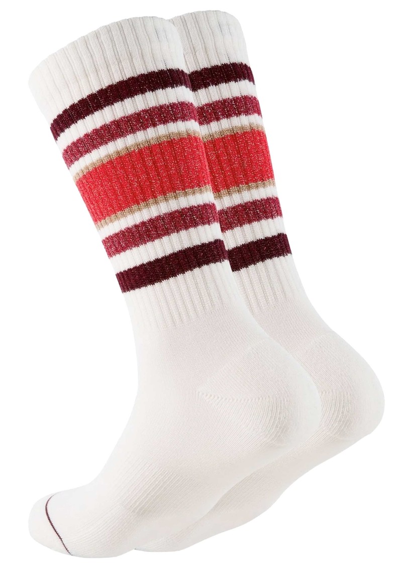 Bring a pop of shimmer to your casual looks with the Ooley Sporty Glitter Socks in Chilli Red. Featuring a subtle sparkle, a cushioned plush sole, and a sporty silhouette, these socks combine effortless style with all-day comfort - designed by Anna Elise for those who love to make a statement while staying practical.