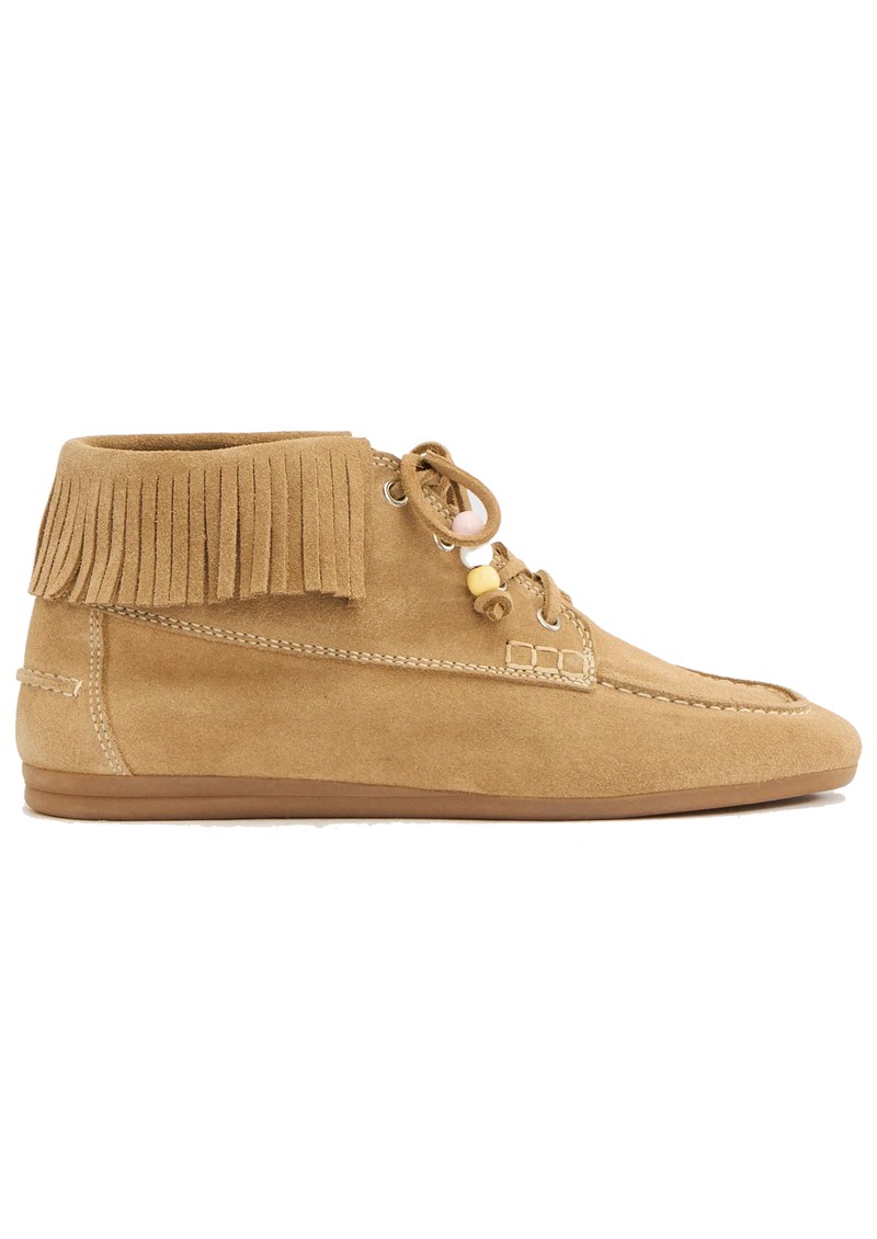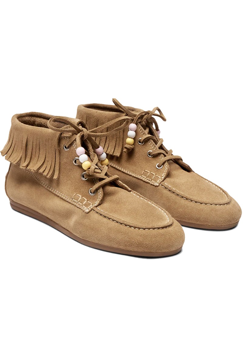 Say hello to the Pavement Marin Boots. Based on the iconic Marin Loafer, these boots are crafted by hand in Portugal, and feature a mushroom taupe finish, soft leather interior, and a sturdy rubber sole. We love the adorable beaded detailing and fringe egding. Key features include: