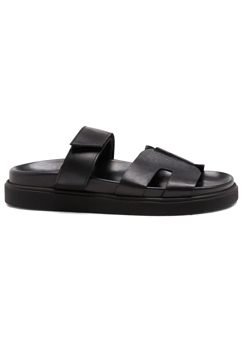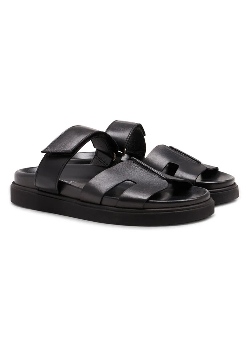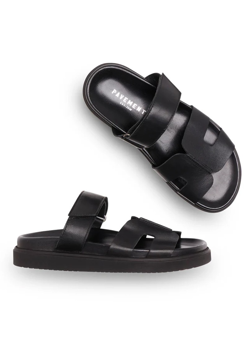 A gorgeous new season style from Pavement, meet the Maru Sandal, designed in a smooth black leather. This slip one style features a cross over front with velcro fastening for maximum comfort. Other features include: