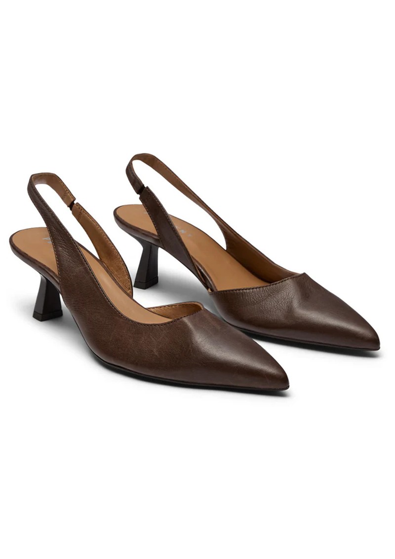 Step into statement style with the Pavement Therese slingback heels, handcrafted in Portugal in a luxurious brown leather. Featuring a sleek 6cm heel, these pointed shoes offer the perfect balance of comfort and sophistication.