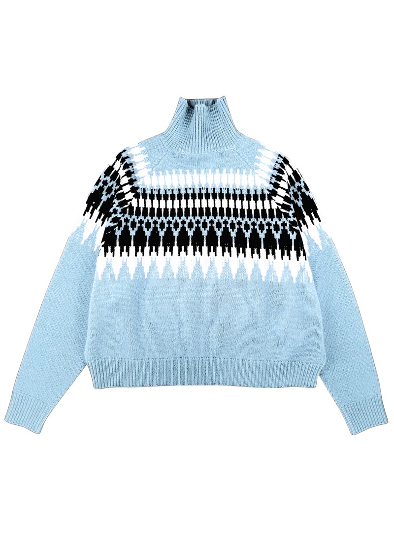 The Podeny Pernille Jumper is a modern Fair Isle turtleneck crafted from a luxurious 30% cashmere and 70% wool blend. Its soft, 5-ply jacquard texture, raglan drop shoulders, and slightly cropped, oversized silhouette make it a stylish and cosy choice for ski trips or layering on cooler days.
