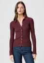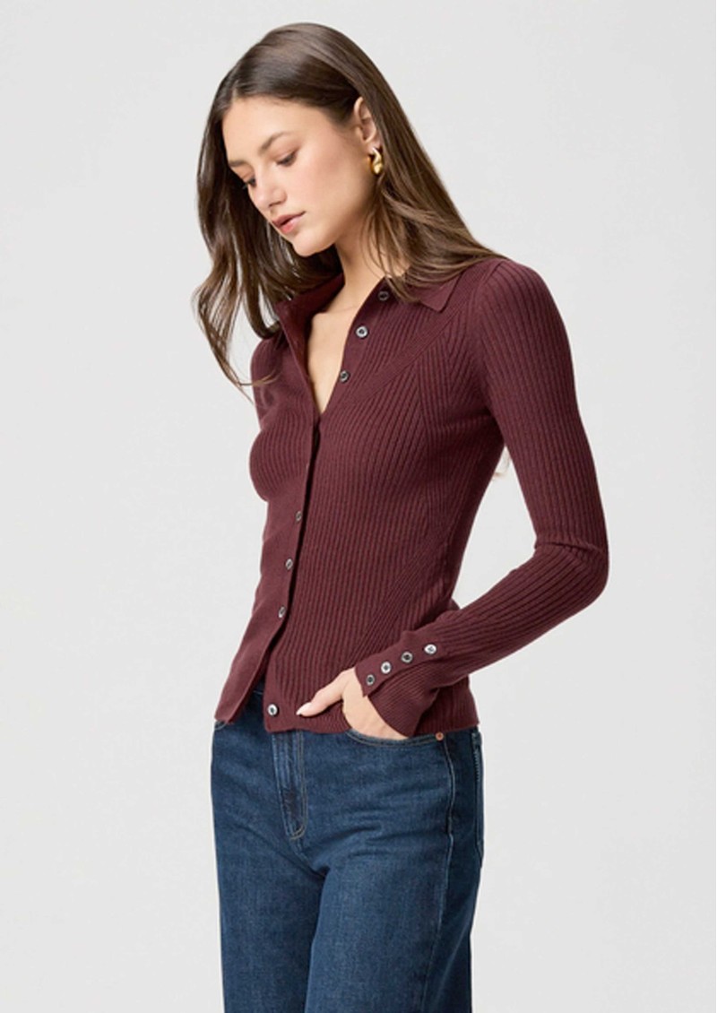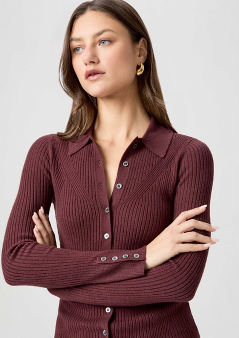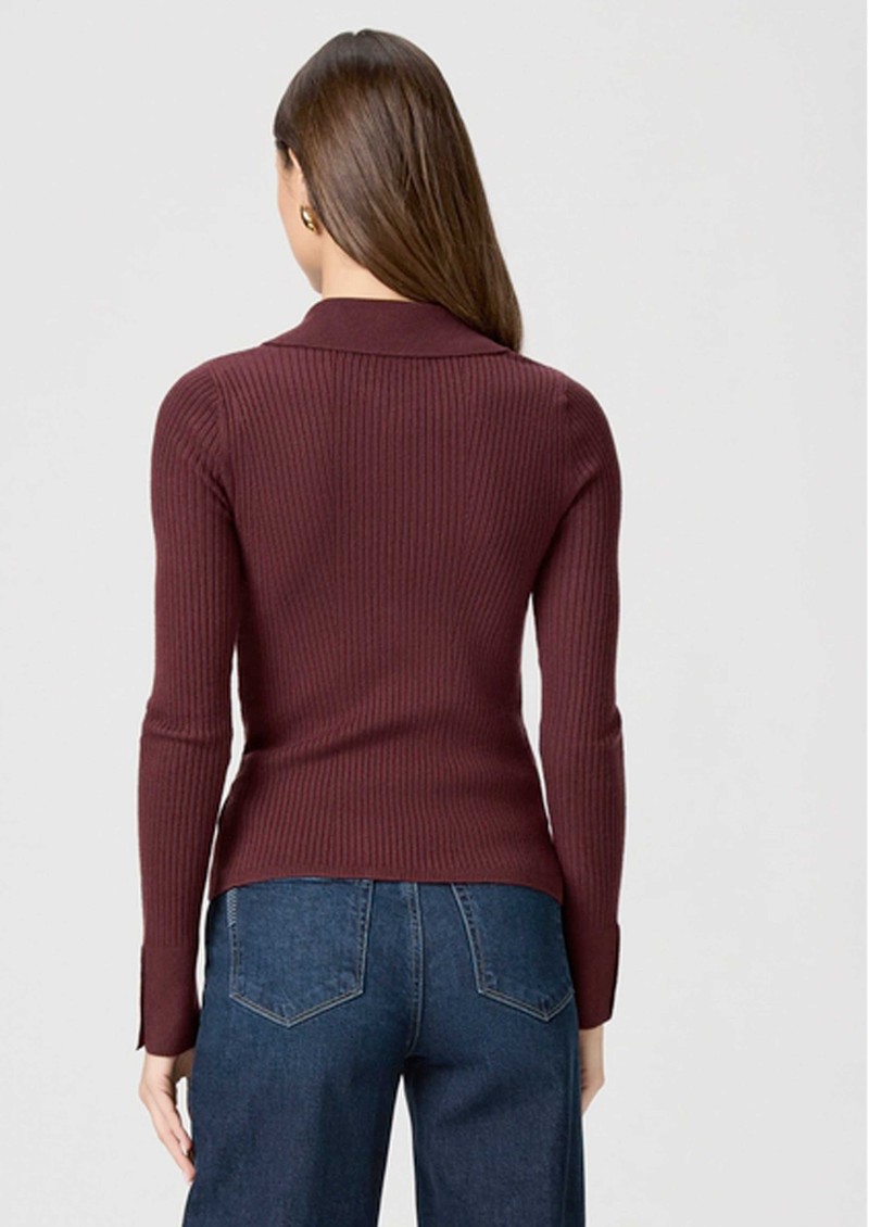 Paige Denim Jayde Ribbed Polo Top - Oxblood