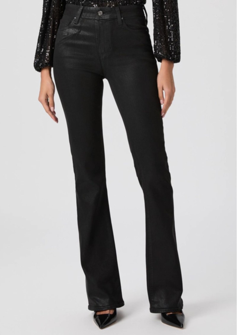 Say hello to the Paige Denim Laurel Canyon High Rise Flared Jeans. In a gorgeous coated black, these jeans are perfect if you need an elevated and flattering silhouette. Crafted from Paige's iconic stretch denim, these jeans are excellent for taking you from day to night. Key features of these Paige jeans include: