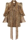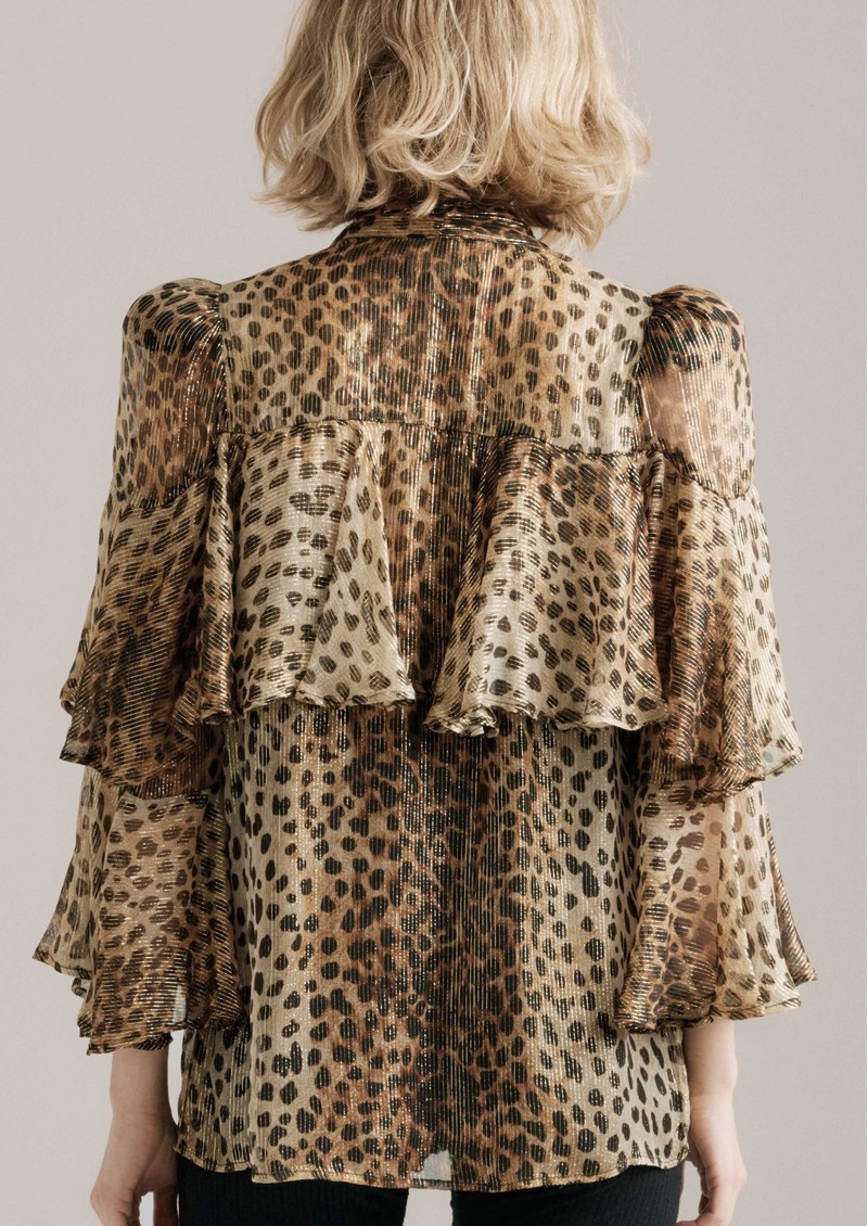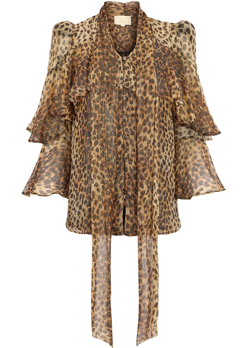 QUEENS OF ARCHIVE Bea Pussybow Tiered Blouse - Cheetah