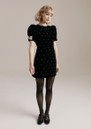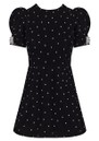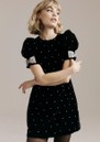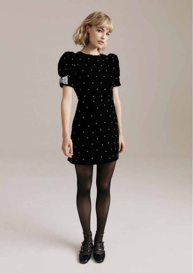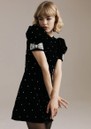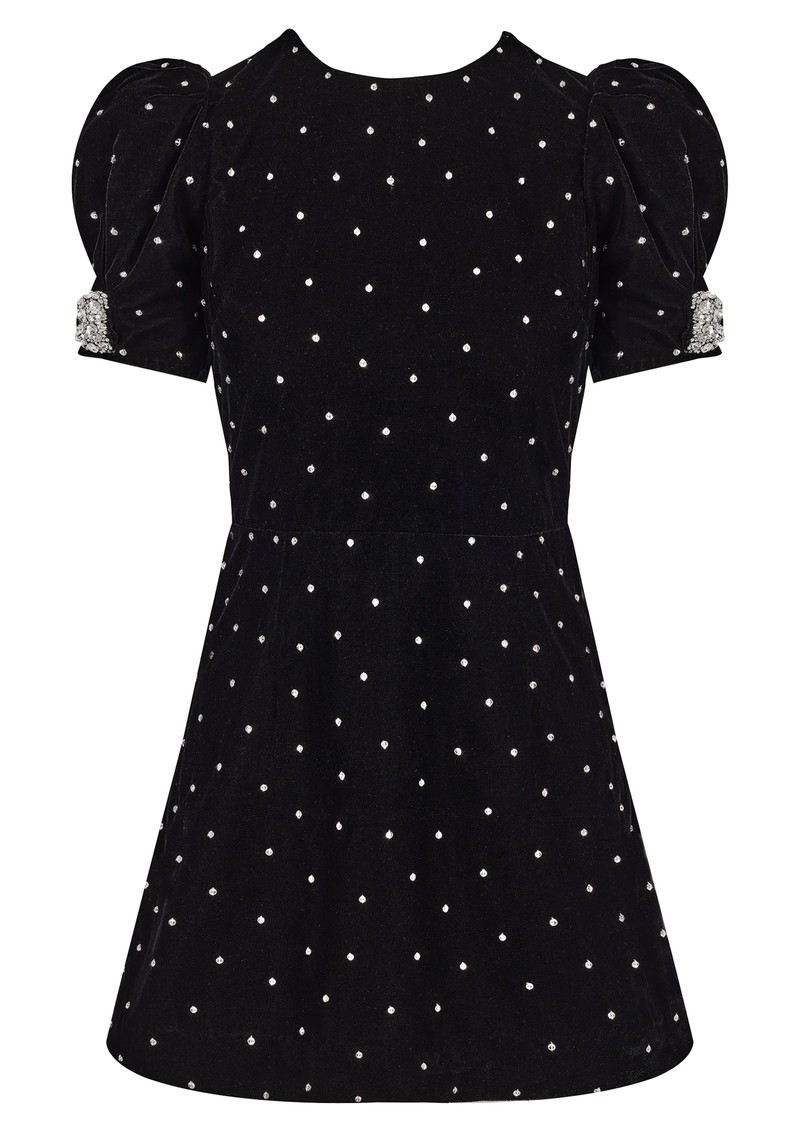 The Queens of Archive Luna Dress is playfully refined and designed to dazzle! Crafted from sumptuous black velvet and adorned with hand-sewn diamantés, this dress glimmers like a starlit midnight sky. A sculpted pleated puff sleeve add vintage allure, and the embellished bow catches the light with a whisper of mystery. Key features of this Queens of Archive dress are: