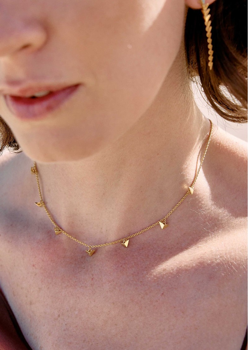 Bring graceful movement to your everyday look with the Rachel Jackson Dreamer Bird Choker Necklace. A row of delicate bird silhouettes glides along the collarbone, catching the light with every motion. Hand-crafted from 18ct gold-plated sterling silver, this adjustable choker can be worn alone for subtle elegance or layered.
