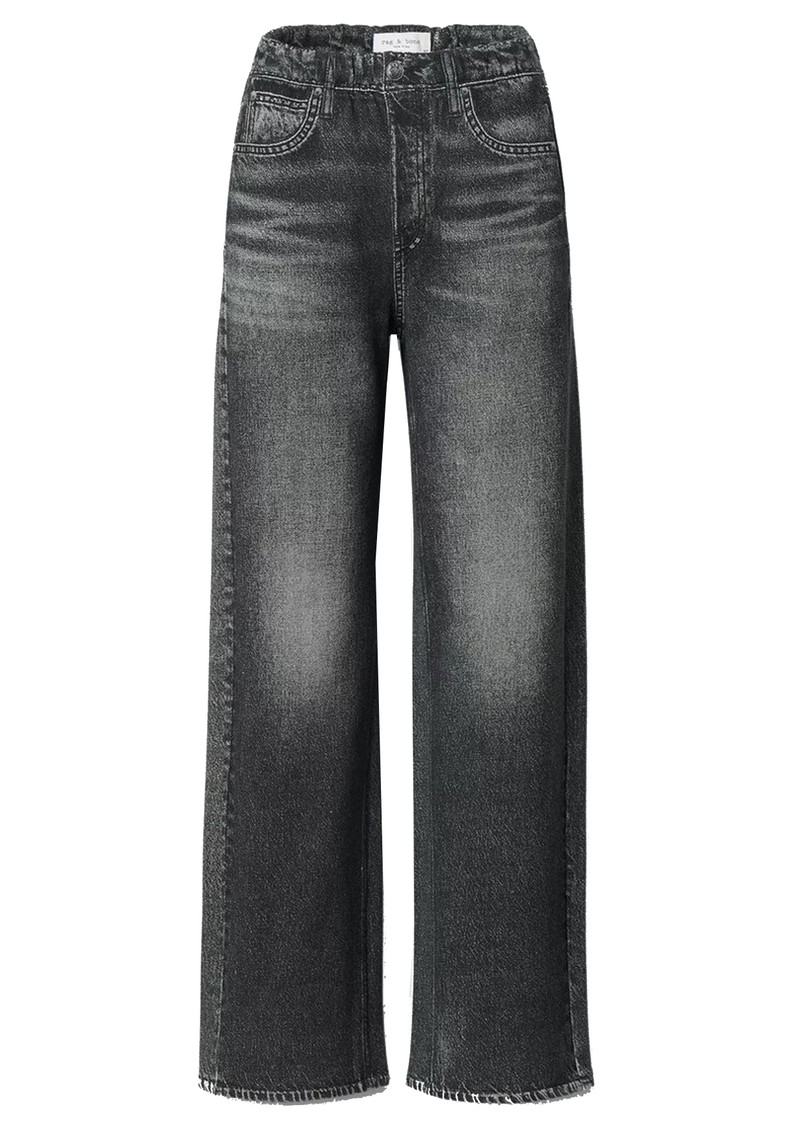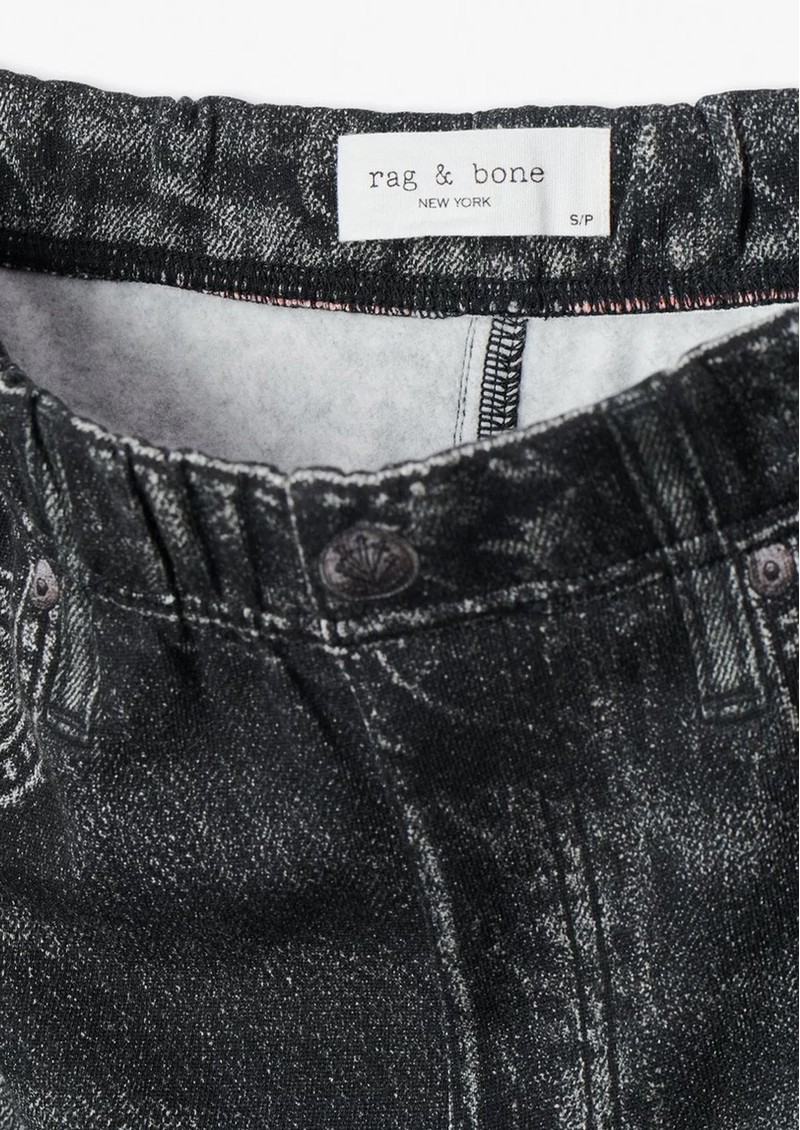 The Rag & Bone Miramar Cotton Fleece Pull On Wide Leg Trousers in Washed Black bring the look of worn-in denim together with the ease of loungewear. Cut from soft cotton terry, fleece lined and digitally printed for a true-to-jeans finish, they deliver effortless style with uncompromising comfort.