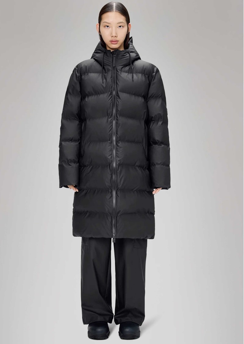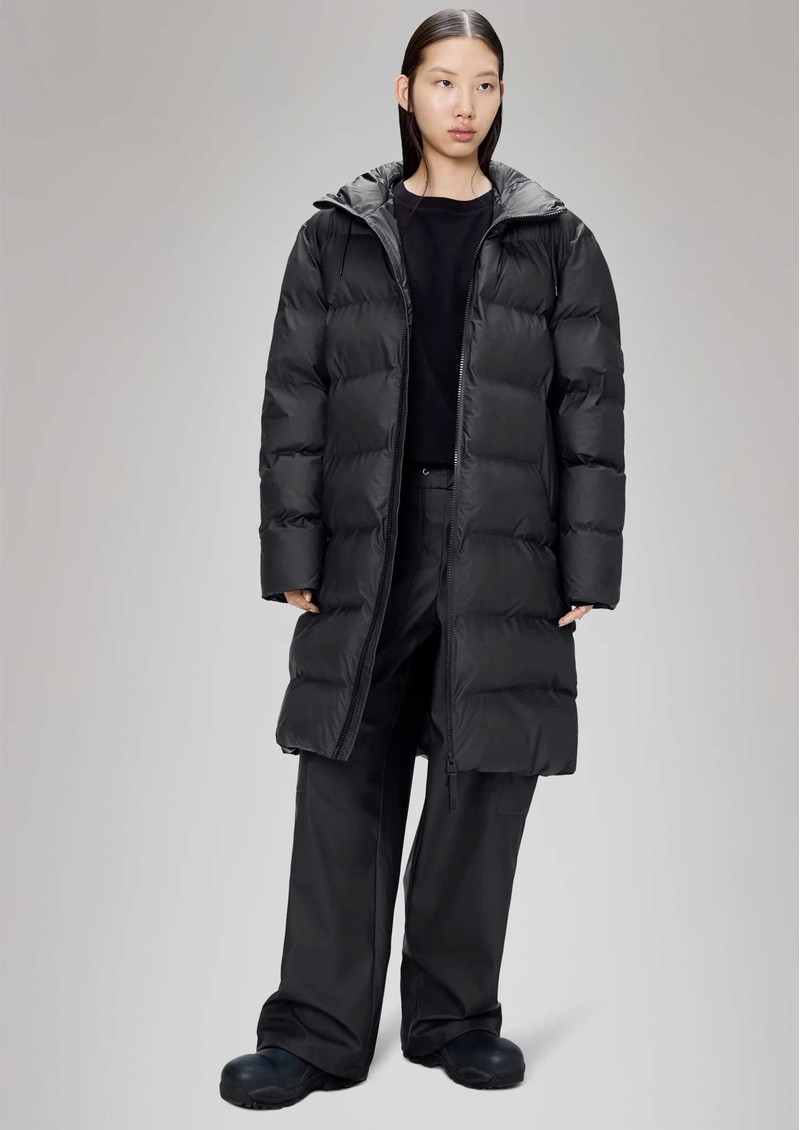 RAINS Alta Waterproof Long Puffer Coat - Black