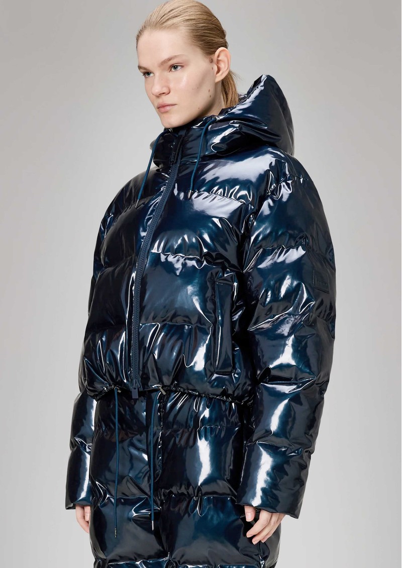 Stay warm in striking style with the Rains Alta Short Puffer Jacket in Spill, a high-shine petrol blue cropped puffer that blends contemporary design with practical winter performance. Featuring insulated chamber technology, an adjustable hood, and fleece-lined pockets, it delivers lightweight warmth and full protection from wind and rain.