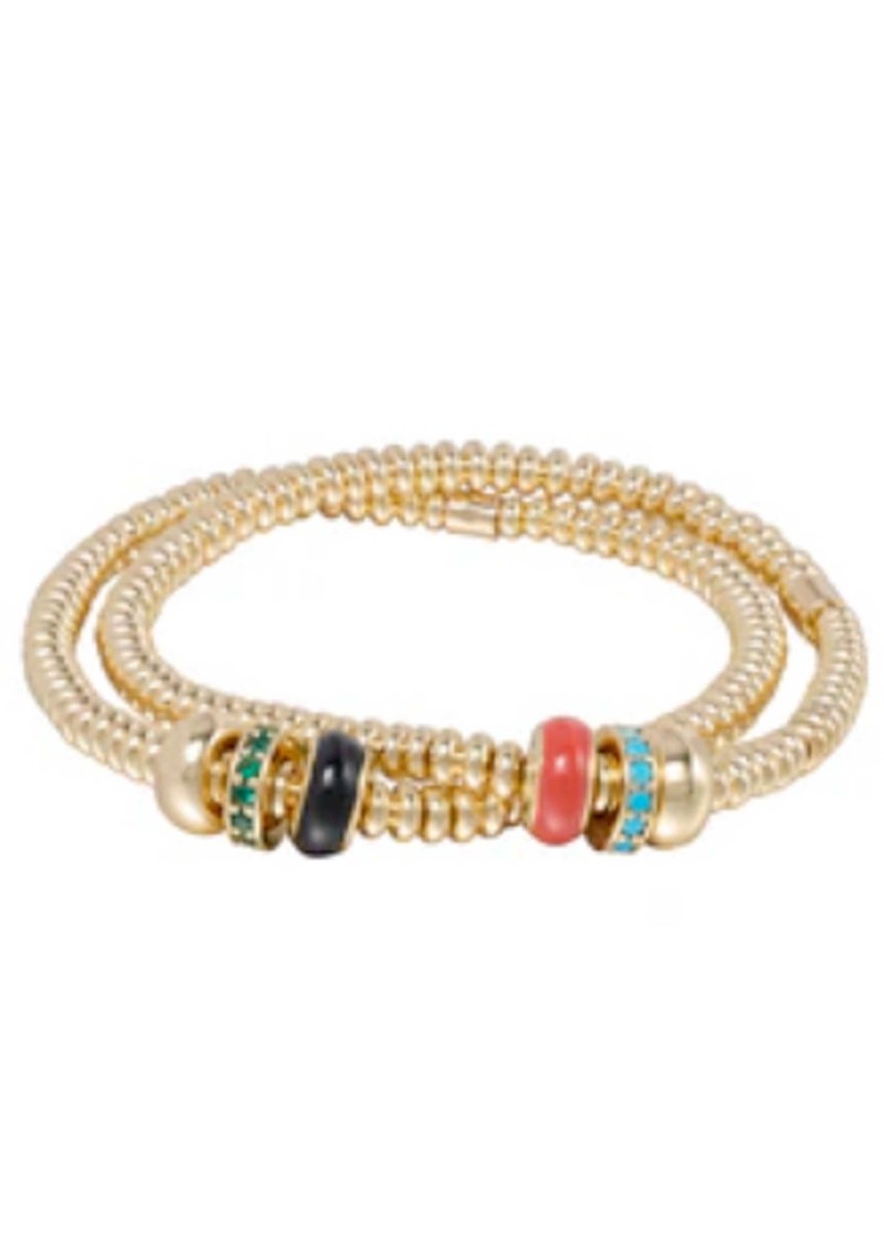 Add effortless shine with the Roxanne Assoulin Corduroy Slider Bracelet Duo in polished gold tones. This chic set of two stretch bracelets features enamel and crystal slider charms for a modern, stackable look.