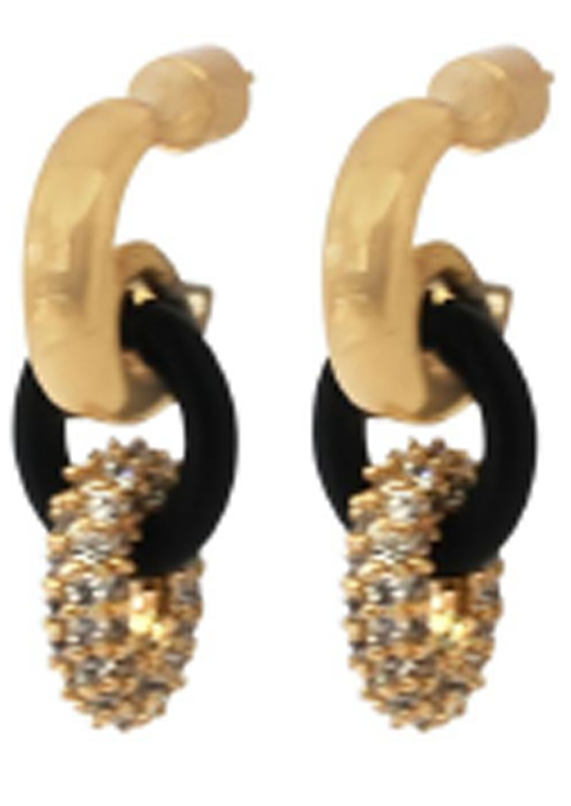 Add a touch of sparkle to your look with the Roxanne Assoulin Midnight Earrings. Featuring layered gold, black, and crystal-encrusted hoops, they’re the perfect blend of chic and festive elegance.