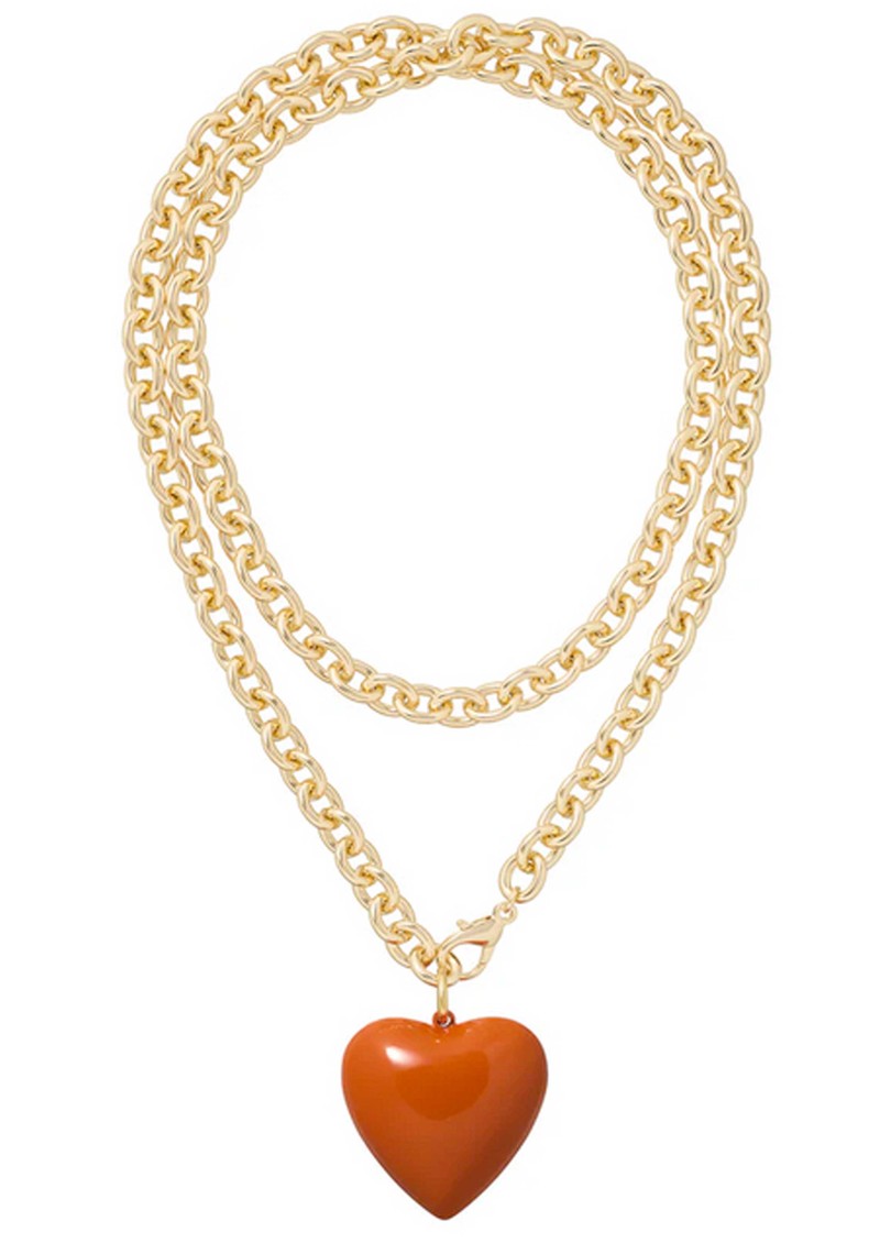 Add playful charm to any outfit with the Roxanne Assoulin Puffy Heart Necklace in Sienna, featuring a polished gold chain and a detachable Big Puffy Heart charm.