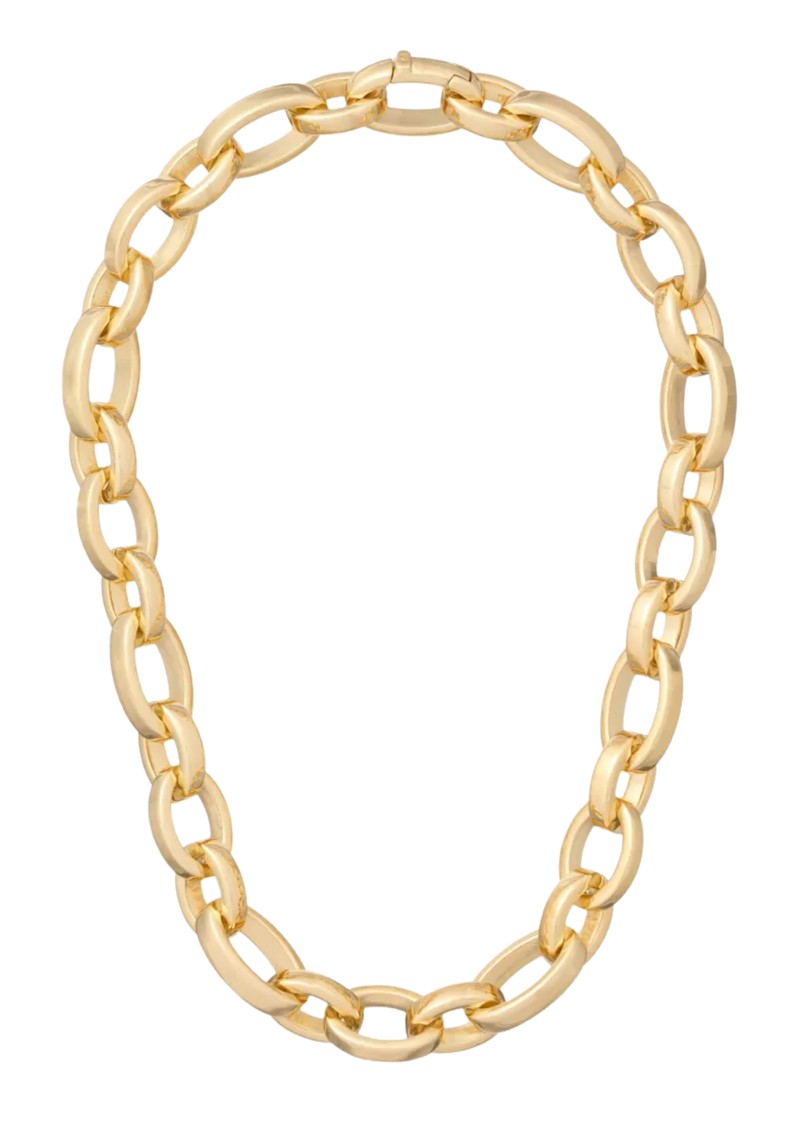 Pair this bold Roxanne Assoulin Puffy Link Necklace with a minimalist Rails dress and layer on additional Roxanne Assoulin pieces for a chic, effortlessly curated ensemble.