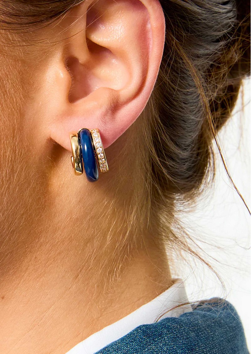 Say hello to the fabulous Roxanne Assoulin Tiger Eye Stone Huggie earrings.With a trio of different hoops conjoined, these fabulous earrings are perfect to level up your looks, day or night.