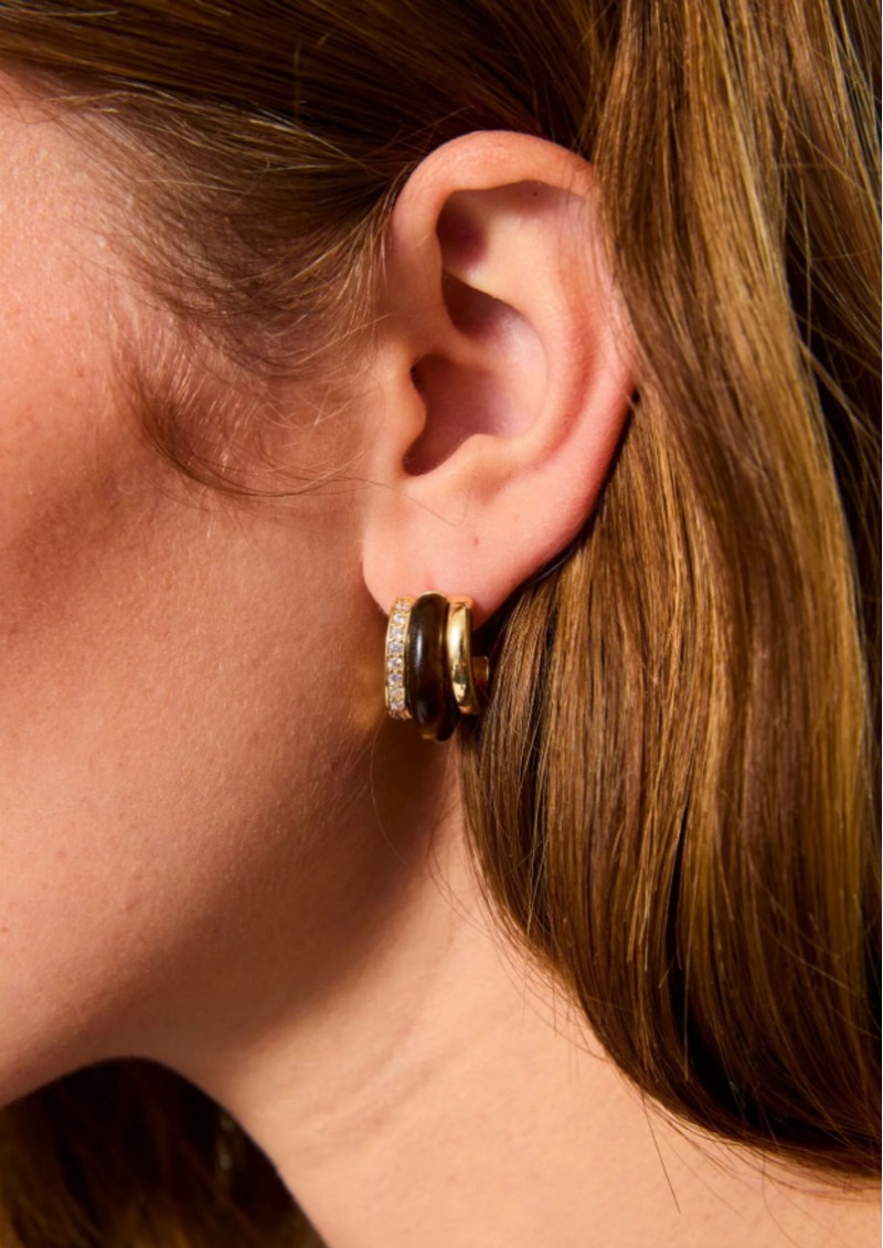 Say hello to the fabulous Roxanne Assoulin Tiger Eye Stone Huggie earrings.With a trio of different hoops conjoined, these fabulous earrings are perfect to level up your looks, day or night.