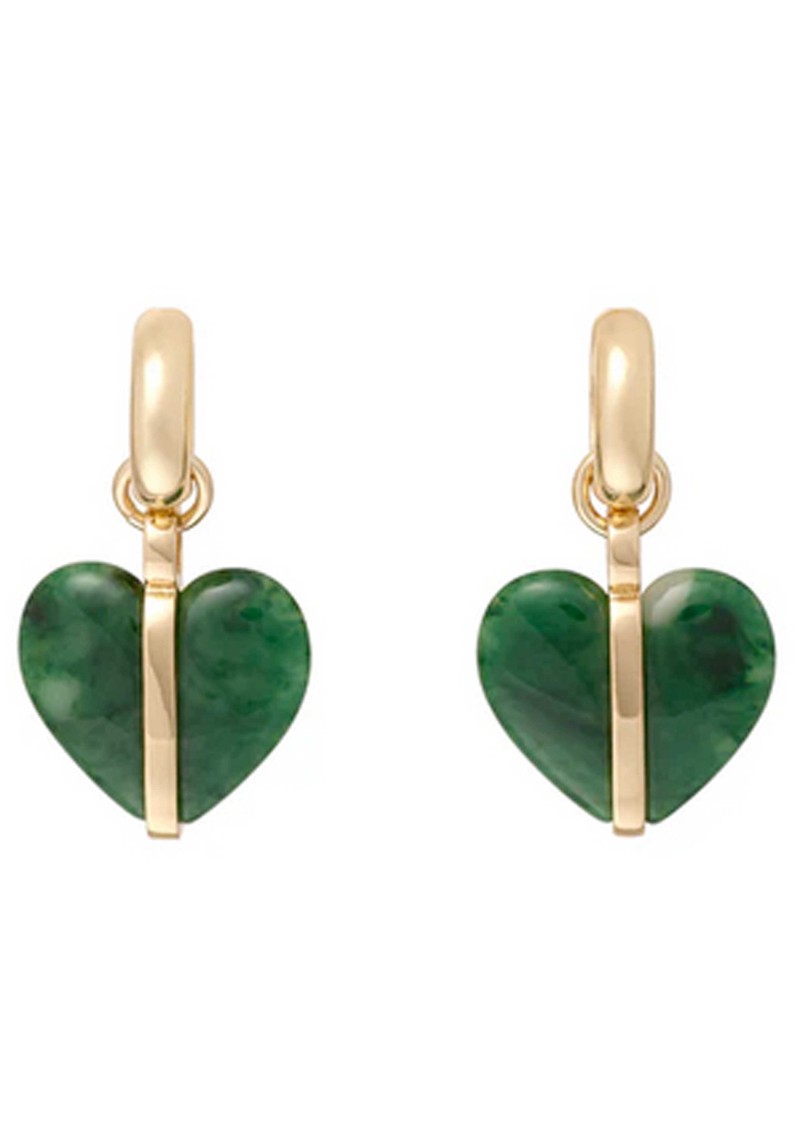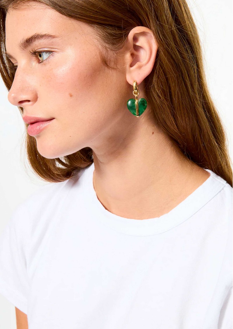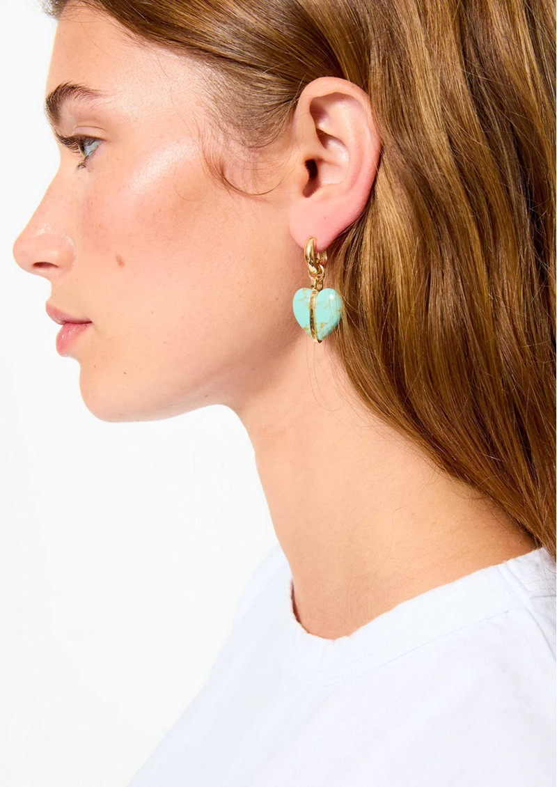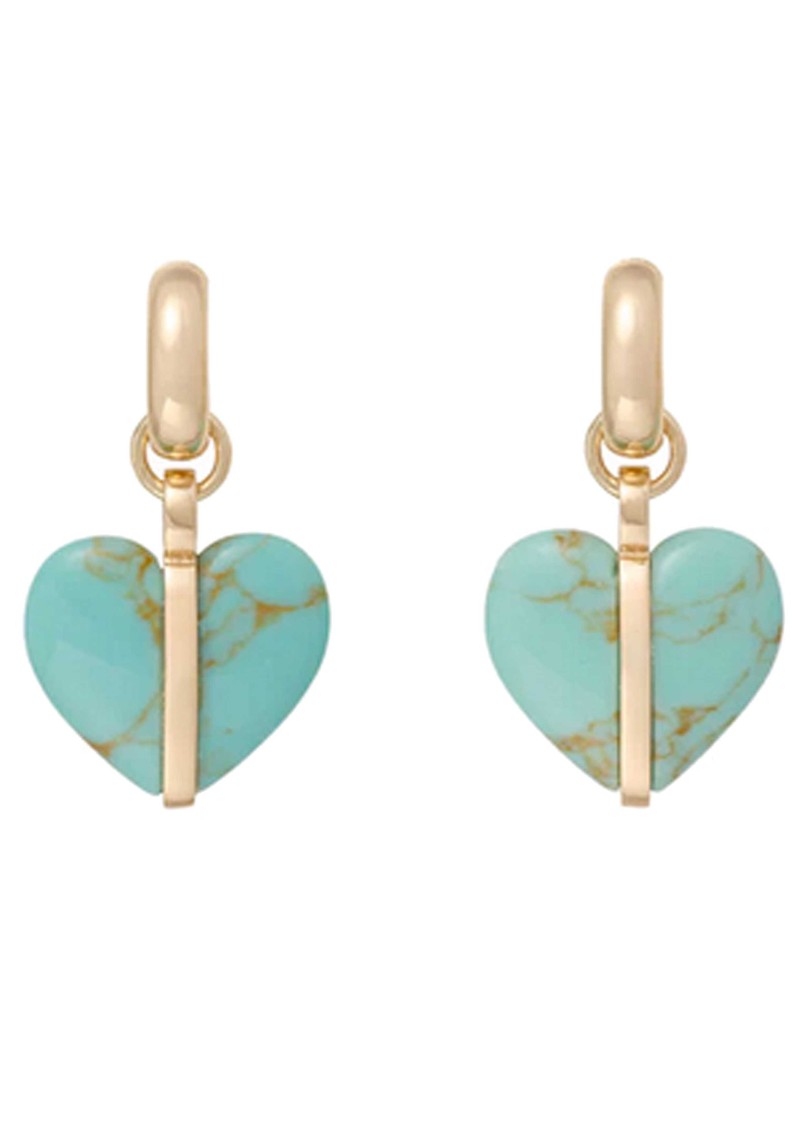 The Roxanne Assoulin Stone Mini Heart Earrings in gold add a playful yet elegant touch with their turquoise heart charms. Finished with polished gold-tone details and secured on titanium posts, these 1.5” earrings are perfect for everyday sparkle.