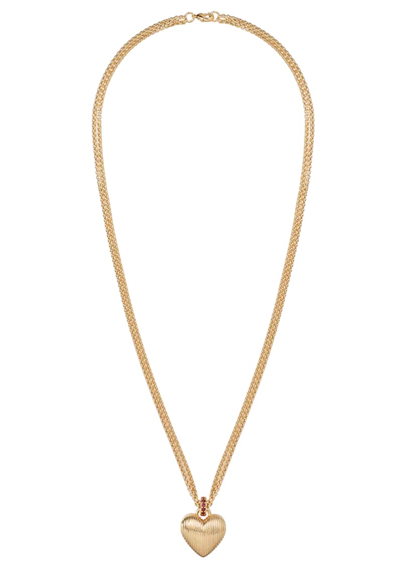 Introducing the Roxanne Assoulin Mini Florentine Heart Necklace which features a beautiful textured heart charm with ruby crystal detailing. Other features include: