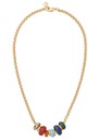 This Roxanne Assoulin necklace is made from a gold-tone metal chain with various enamel and hammered metal charms.