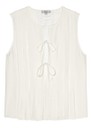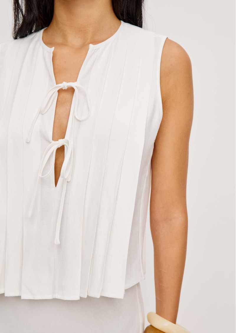 The Rails Aja Top in ivory is effortlessly chic with a relaxed, flowy silhouette. Featuring an all-over pleated design, a tie-front detail, sleeveless cut, and a rounded neckline, it brings movement and texture to any outfit.