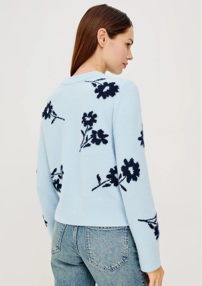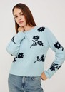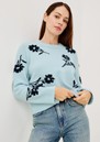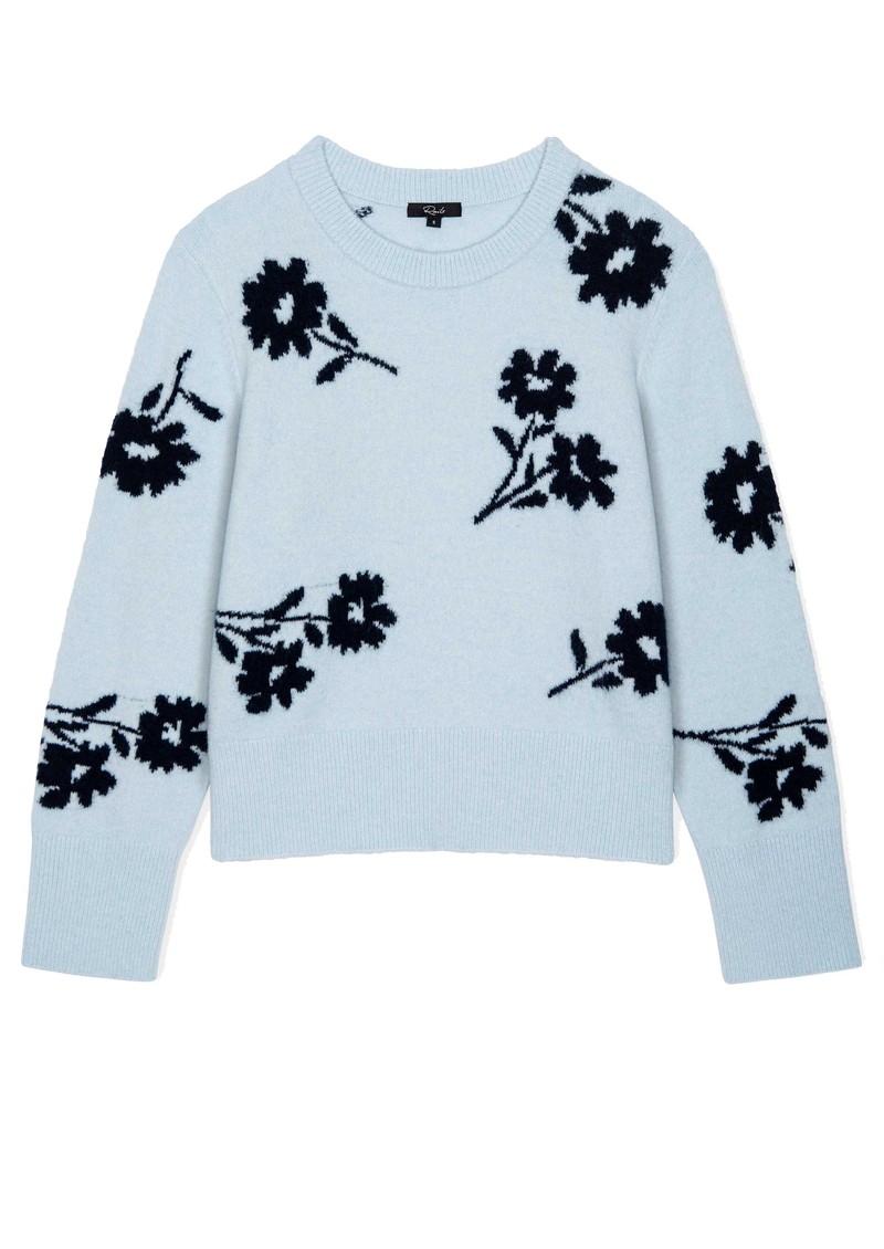 The Rails Anise jumper brings a fresh, feminine edge to your knitwear collection with its soft light-blue base adorned with a striking floral print. This beautifully made piece features a classic round neckline, full-length sleeves, and finely ribbed trims for a polished finish. Its smooth, slightly stretchy knit offers a comfortable fit that keeps its shape, making it a perfect balance of style and ease for everyday wear.