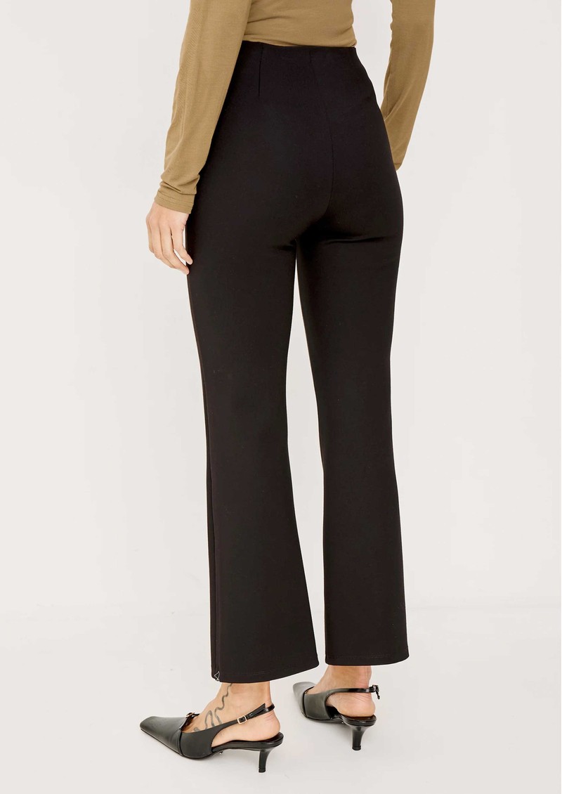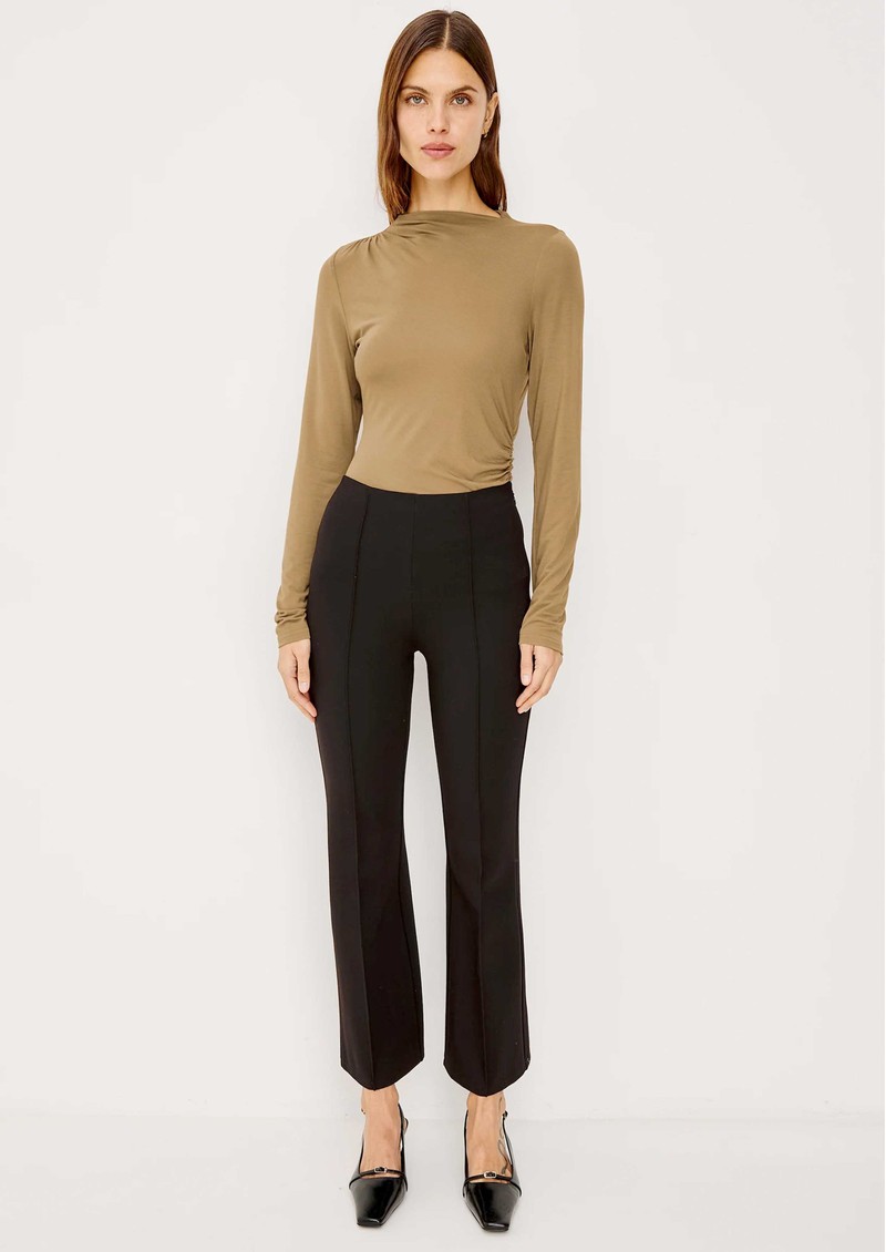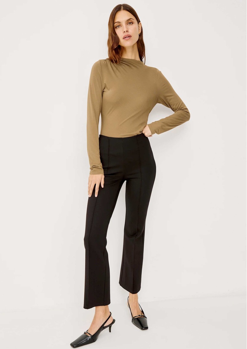 The Rails Auray trousers in black deliver refined dressing at its best. Tailored from luxe ponte for a smooth yet structured feel, they feature a flattering high waist, pintucked front seams, and a subtle kick flare that enhances the silhouette. The cropped, ankle-grazing length adds a modern edge, while the elastic waistband ensures all-day comfort and a sleek, seamless fit.