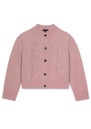 The Rails Coralee cardigan in a soft ballerina pink hue combines cosy comfort with elegant detailing. It features a short ribbed collar, central button closure, full-length sleeves with dropped shoulder seams, textured corded detailing across the front, and neatly ribbed edges for a polished finish.
