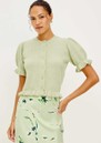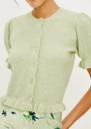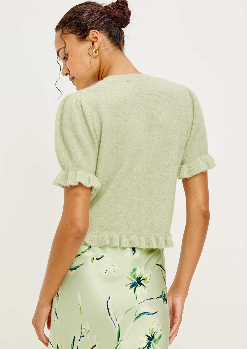 - Short puff sleeves with ruffle trim