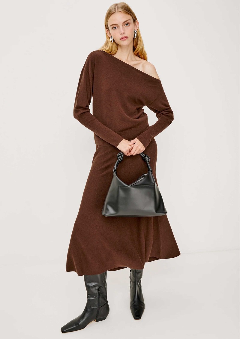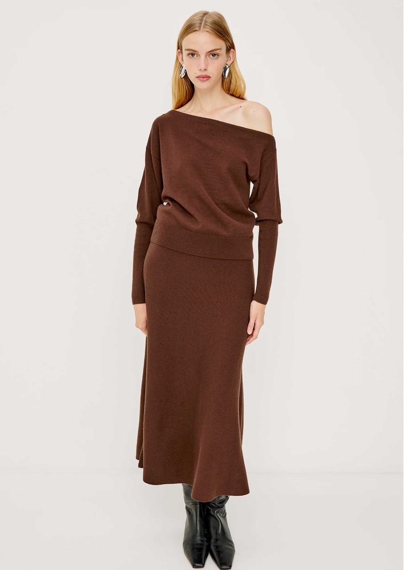 The Rails Odita knitted skirt in Bordeaux combines cosy sophistication with effortless style, crafted from a luxurious soft wool-blend. Featuring a high-rise A-line silhouette and midi length, it offers timeless appeal and comfortable ease for everyday wear.