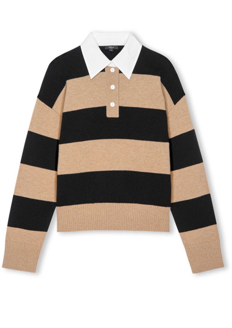 The Paxton Top by Rails is a bold, statement striped shirt crafted from a luxurious blend of wool, organic cotton, and cashmere. With its classic pointed collar, full-length sleeves, and boxy androgynous fit, it effortlessly balances structure and softness.