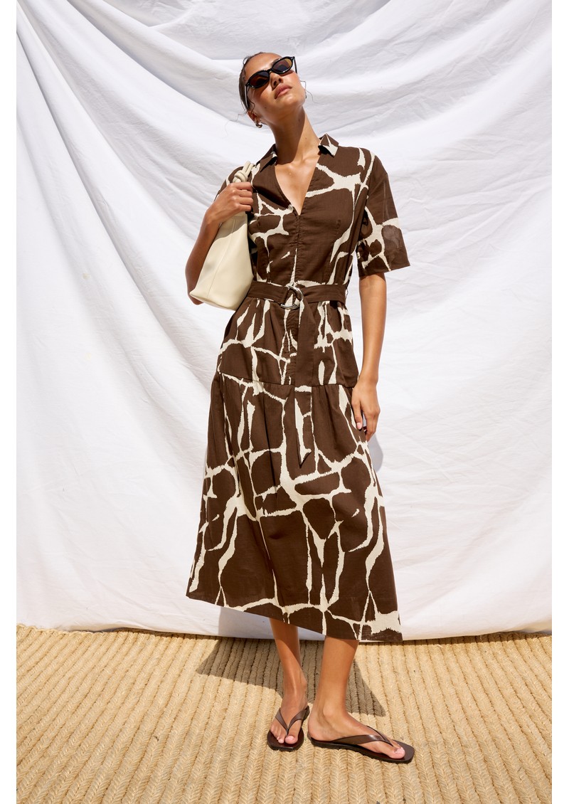 Introducing the Rails Richmond shirt dress which is designed in a crisp lightweight cotton. Featuring a brown and off white animal inspired print, this dress features a matching waist belt and dropped waistline. Other features include: