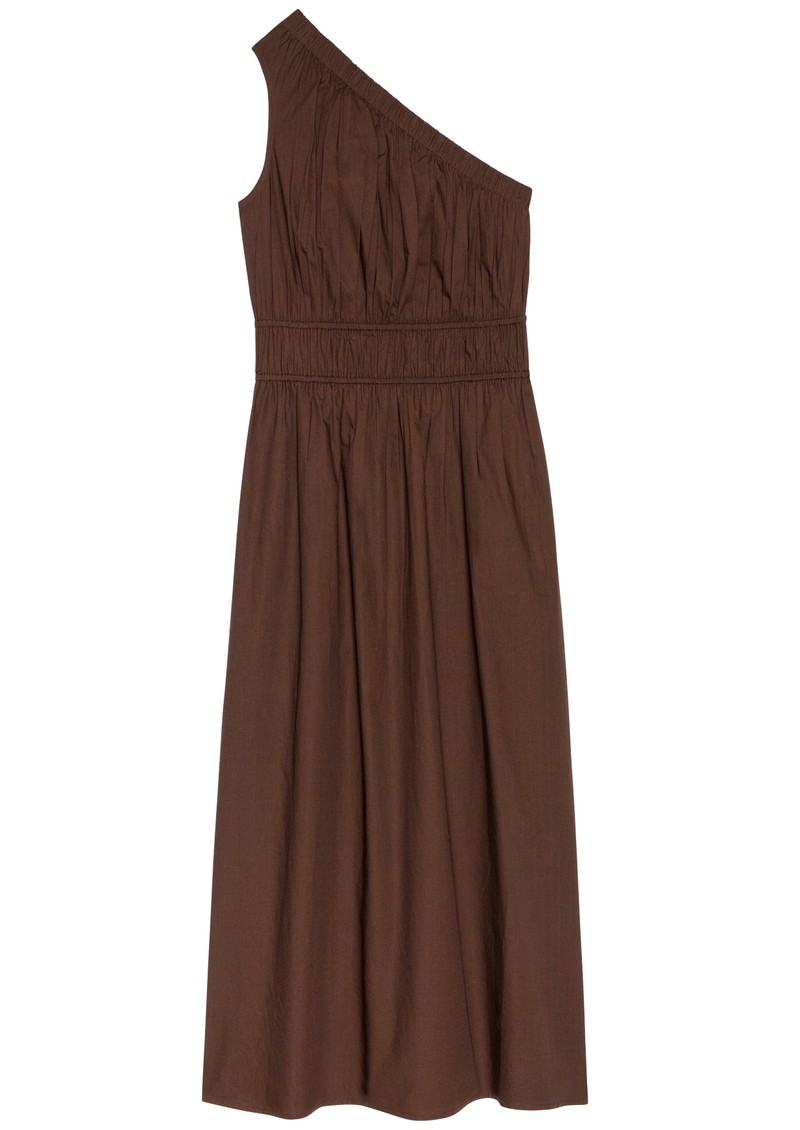 Introducing the Rails Selani One Shoulder Dress, designed in a trendy Espresso brown hue. This lightweight Summery style is a sleek asymetrical dress crafted in cotton poplin and features a cinched waist and flowy a-line skirt. Other features include: