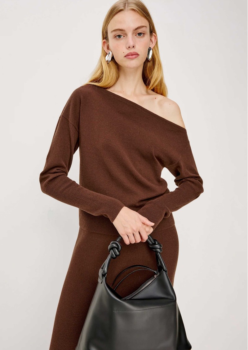 The Rails Tianna off-shoulder jumper in Bordeaux combines comfort and elegance in a luxurious wool-blend. Featuring a flattering off-shoulder neckline and dramatic, elongated sleeves that taper from the elbow, it’s a sophisticated yet cosy wardrobe essential.