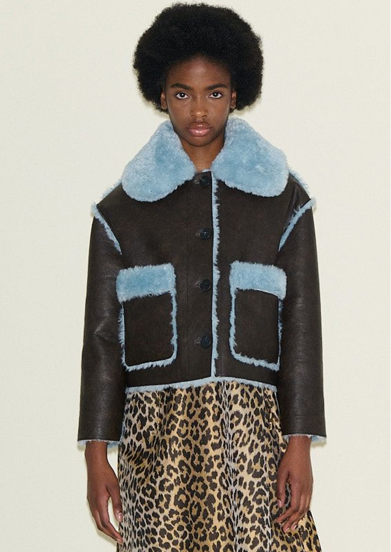SAMDI Johanna Reversible Faux Shearling Jacket - Chocolate & Powder Blue