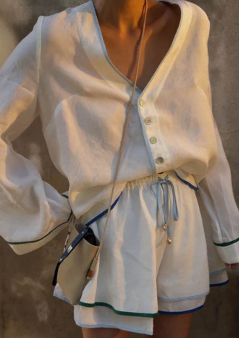 Here at The Dressing Room, we'll be styling this Sancia Leona shirt back with the matching Sancia shorts for a fabulous holiday co-ord look. Finish off with a pair of Castaner heels for a flawless summer look, and a Dragon Diffusion bag.