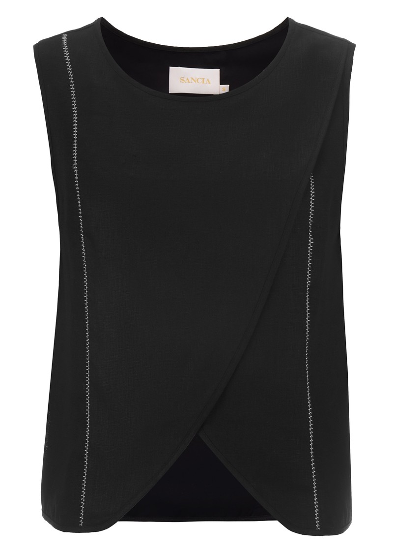 Say hello to the Sancia Nancy Tank Top. This piece is crafted from 100% linen and is a sophisticated twist on the classic tank. Featuring contrast stitching and a distinctive overlapping front, this sleek style is perfect for elevated summer styling. Key features of this Sancia top are: