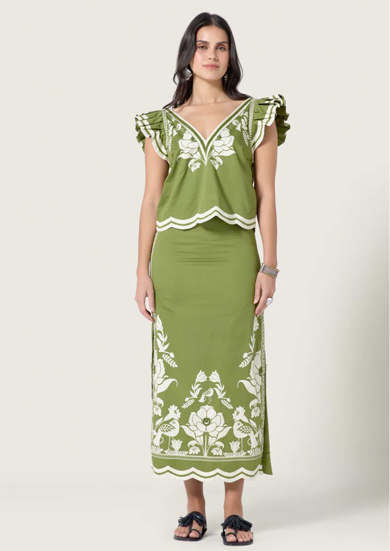 SCARLETT POPPIES Sandina Skirt - Green/Papyrus