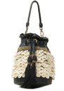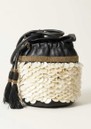 The Scarlett Poppies Shelly Pouch in black is an exquisitely crafted leather accessory, featuring intricate hand-sewn beadwork and cascading Mother of Pearl accents for a textured, statement finish. Finished with knotted leather handles, it blends artisanal detail with everyday elegance, making it a versatile piece that elevates any outfit.