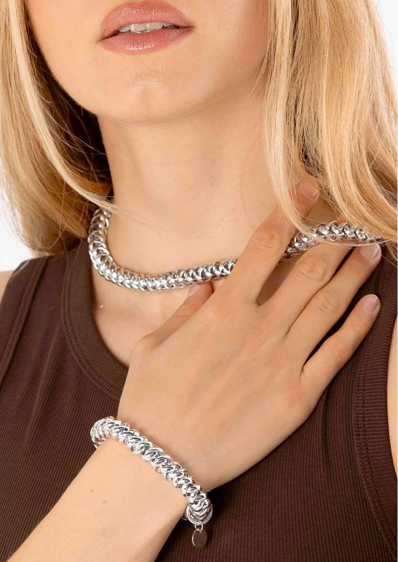 Add a touch of modern elegance with the Scrunchie is Back Chain Bichou in silver, a French-made piece combining durable elastic and polished stainless steel for a sleek, lasting finish. Style it effortlessly as a statement scrunchie or minimalist bracelet.