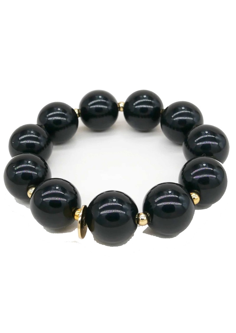 Give your look a chic, understated edge with the Scrunchie is Back Colour & Gold Round Pearl Hair Tie Bracelet, featuring a row of black circular spheres for a sophisticated, contemporary vibe. Made in France from ultra-resistant elastic with gold-toned stainless steel accents, it works perfectly as both a stylish bracelet and a practical hair tie.