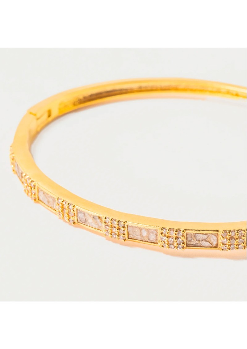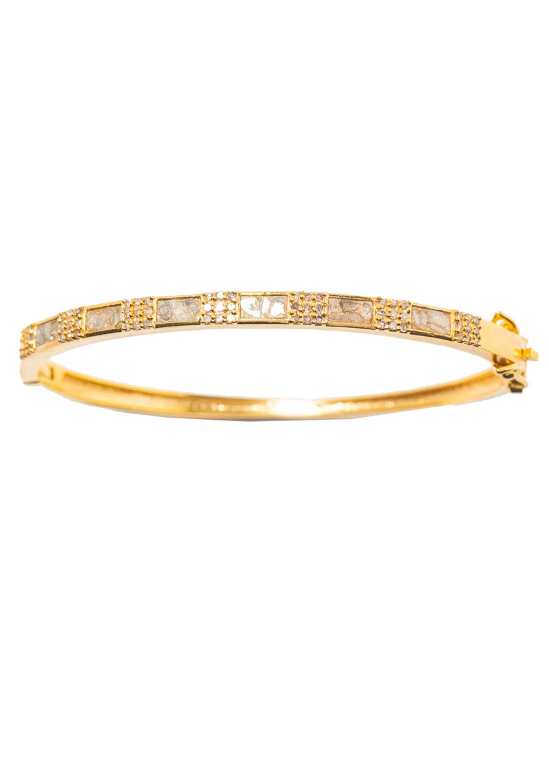 This Shana Gulati bangle is made from Sliced raw uncut diamonds, White resin, Pave champagne diamonds, Vermeil 18k gold