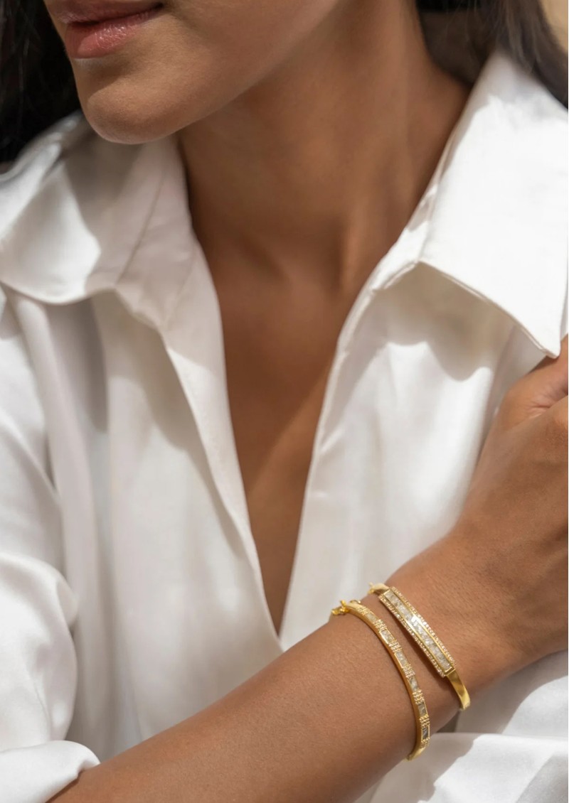 Lovingly crafted and sustainably sourced, meet new jewellery brand, Shana Gulati. This stunning Chotz Bracelet in Gold features raw uncut diamonds and champagne pave diamonds for a truly special piece. Other features include: