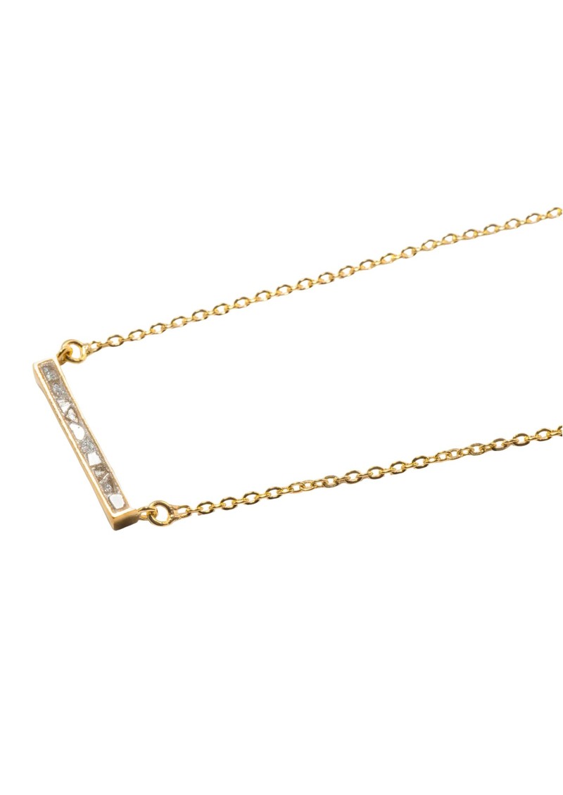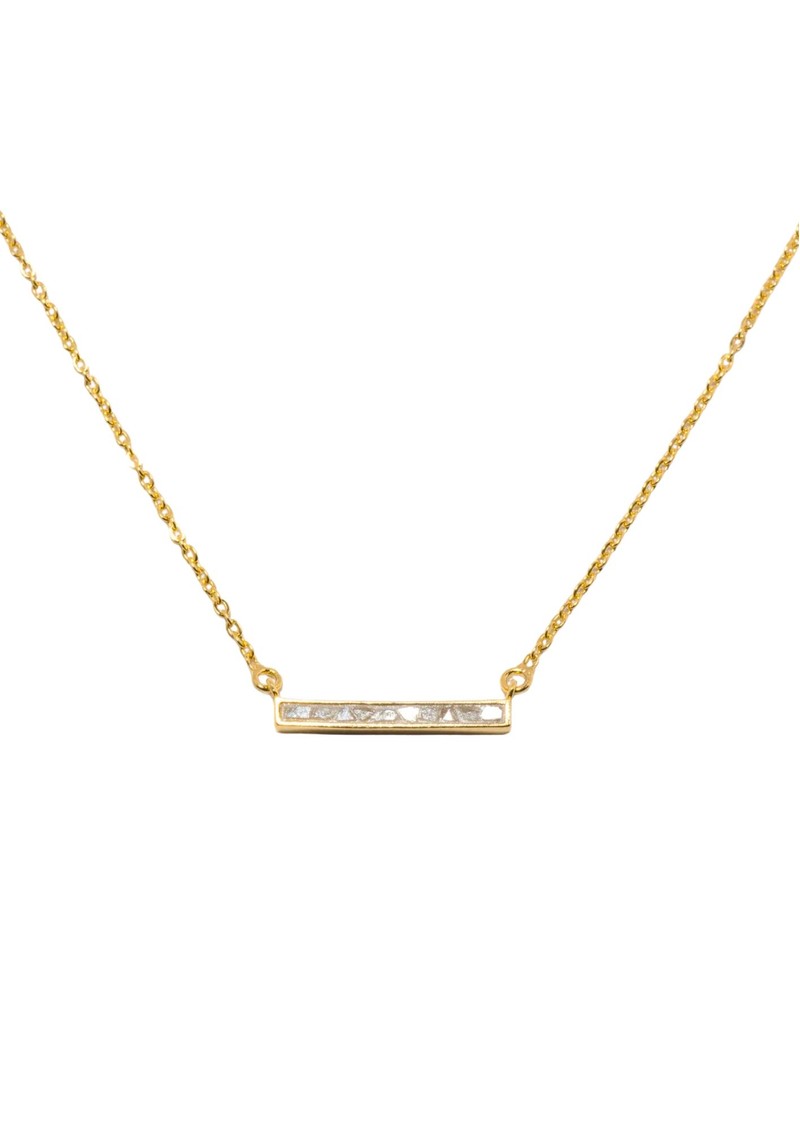 Introducing the Shana Gulati Emlyn Pendant Bar Necklace. Crafted from sliced raw uncut diamonds, this delicate bar necklace is perfect for elevating all of your day to day looks. Designed in 18K vermeil this sleek and chic style is brilliant for those who love clean lines, sharp edges, and uncluttered style. Key features include: