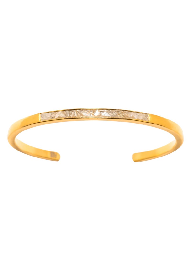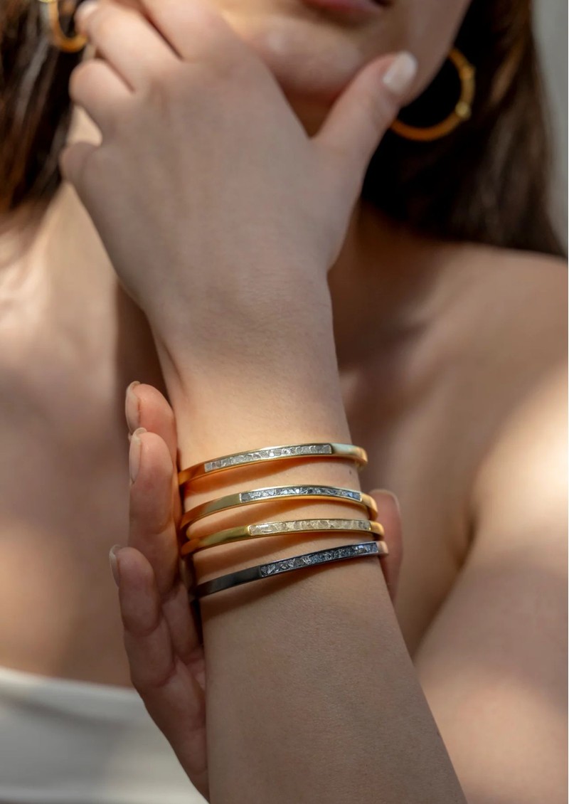 Elevate your look with the timeless charm of the Shana Gulati Hapur Bangle. Featuring a delicate row of shimmering raw diamond accents set against a rich gold band, this piece effortlessly enhances any look. Its sleek design makes it perfect for all events. Style it solo or stack with others for a bolder statement. Key features of this Shana Gulati bracelet include: