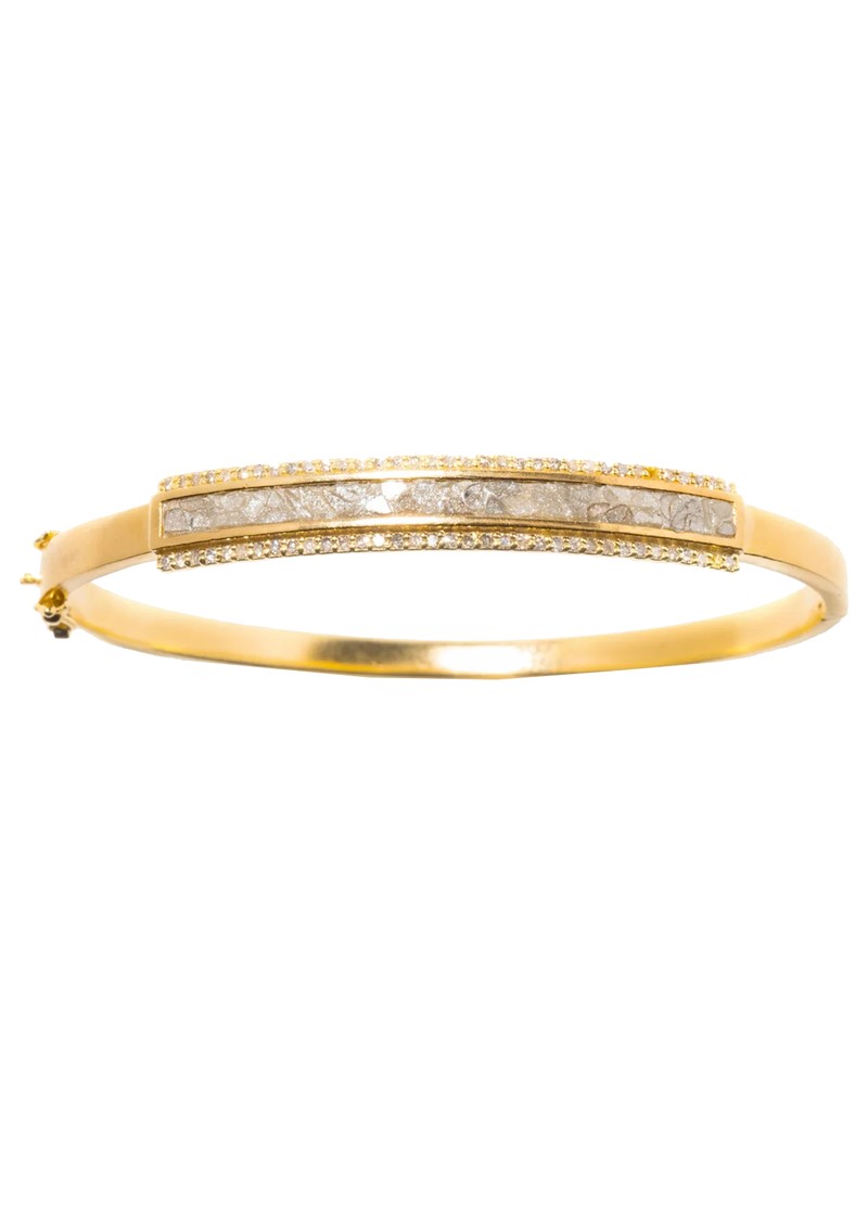 This Shana Gulati bracelet is made from Sliced raw uncut diamonds, White resin, Pave champagne diamonds, Vermeil 18k gold