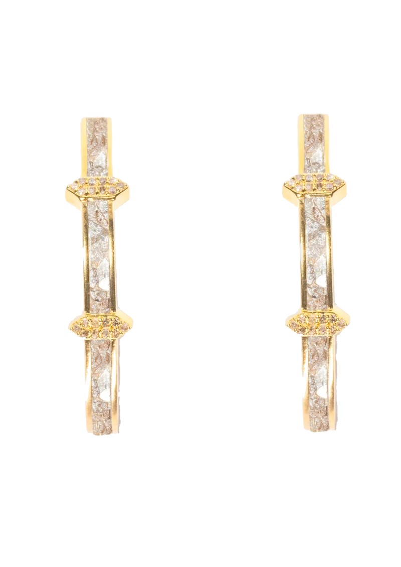 These Shana Gulati earrings are made from Sliced raw Uncut diamonds, White resin, Pave champagne diamonds, Vermeil 18K gold