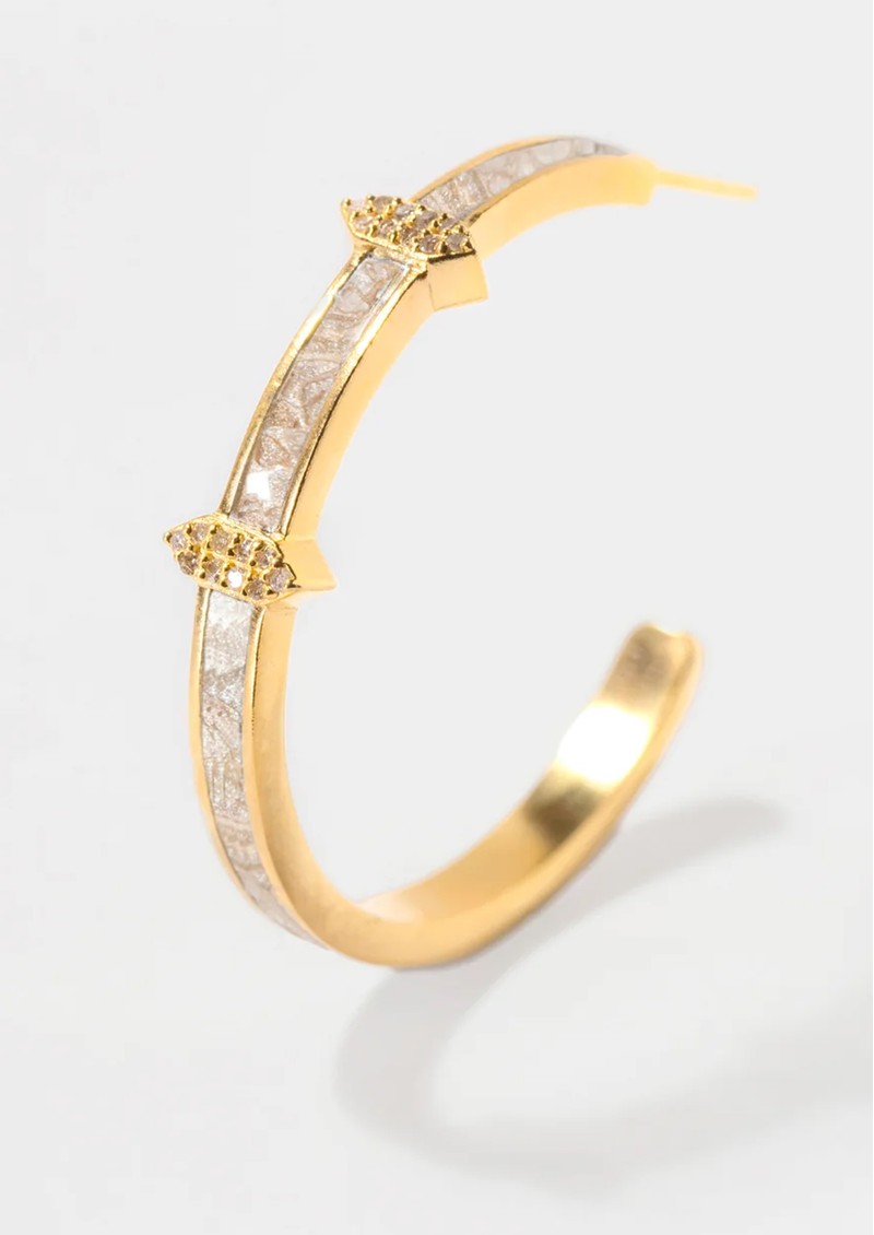 Featuring raw sliced diamonds glimmer aside pavé champagne details, wrapped in gold, these Madison Hoops from Shana Gulati feature: